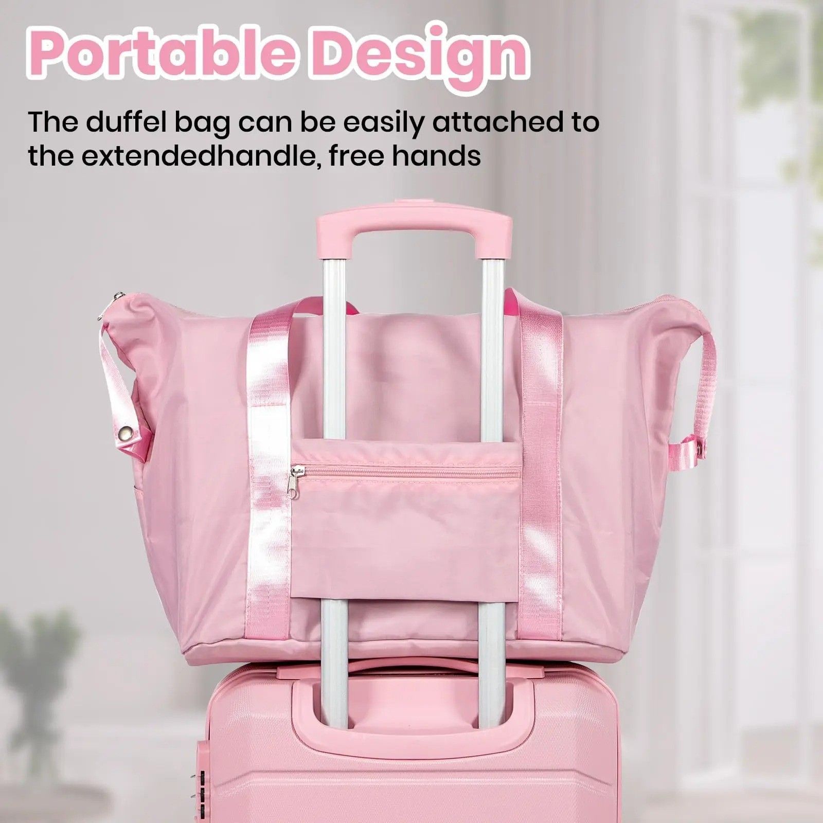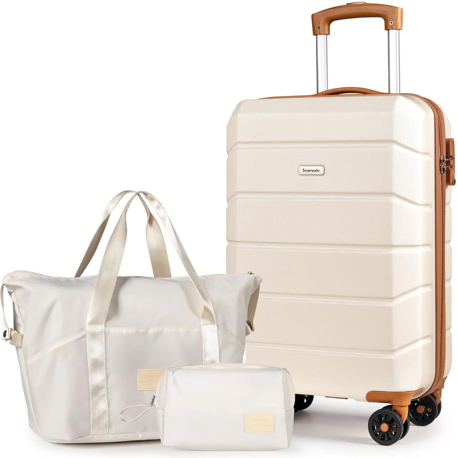 21-inch hard shell carry-on suitcase with lock, plus duffel and toiletry bags. Lightweight, secure, and airline-friendly. A complete travel set for short trips or extra storage.