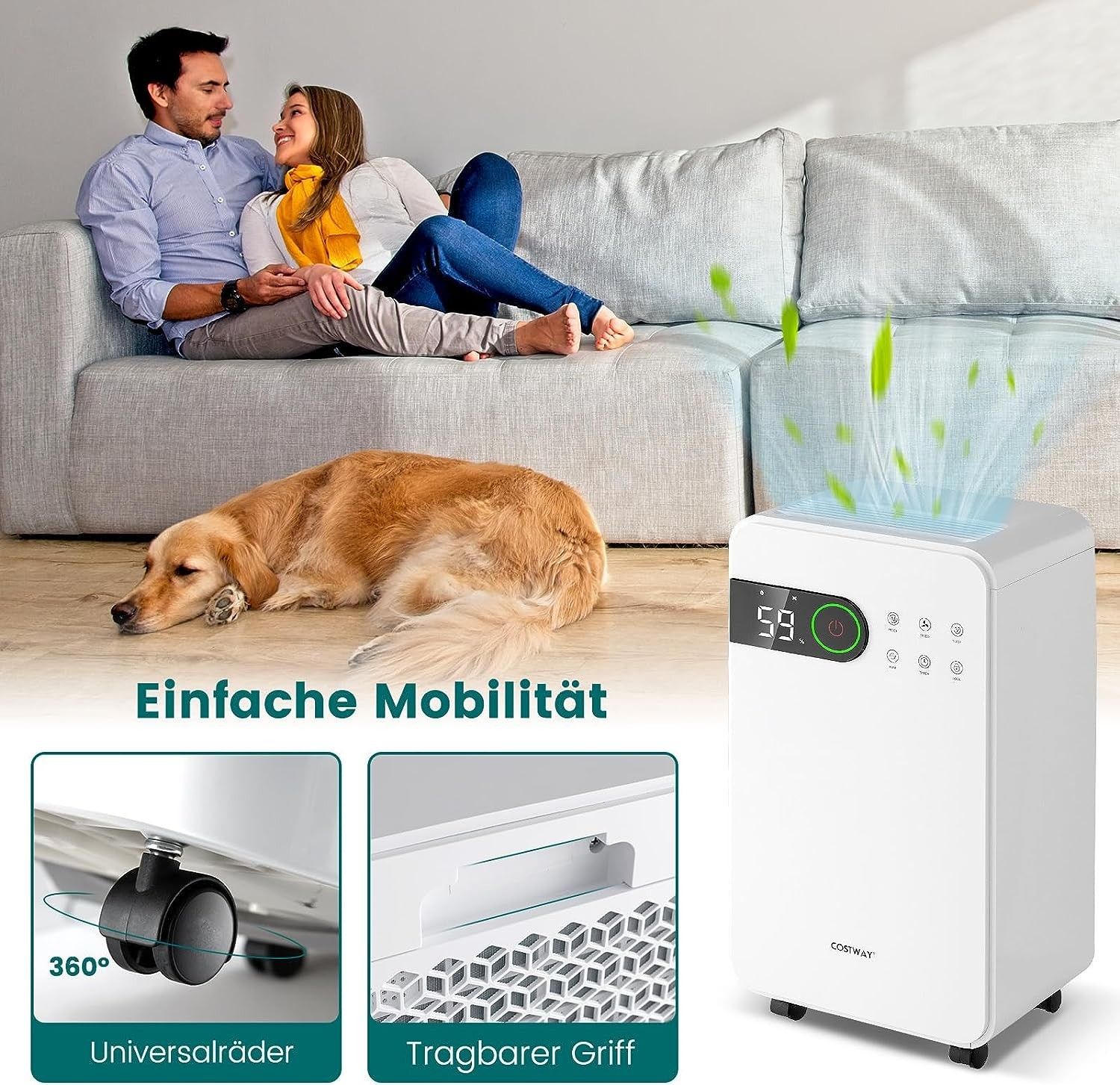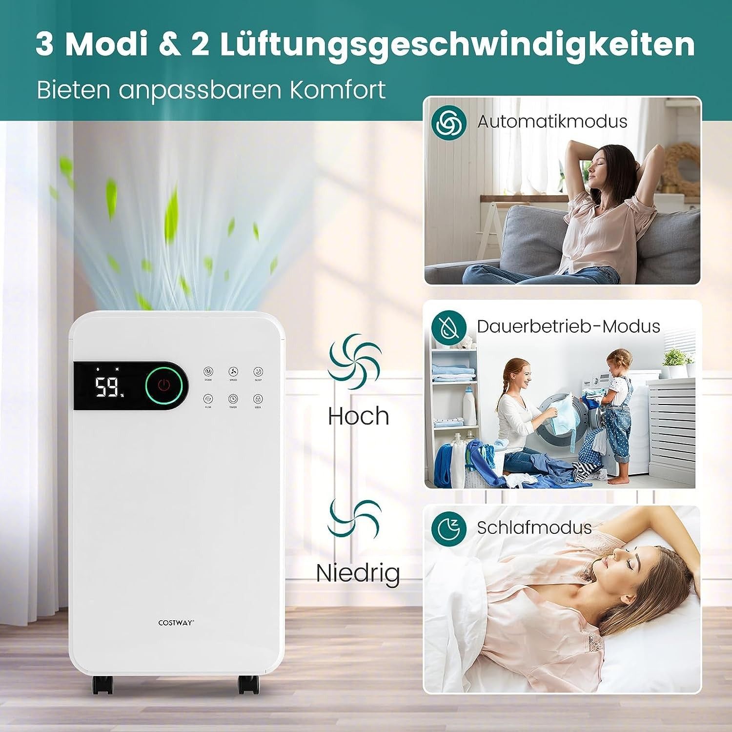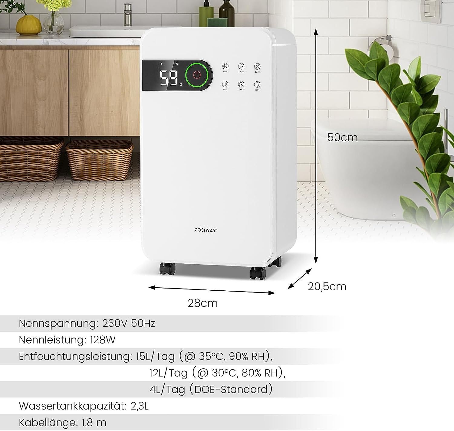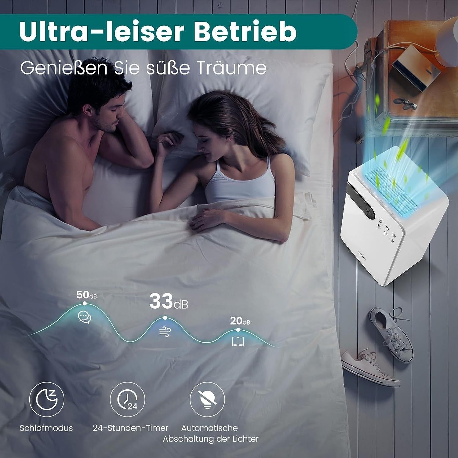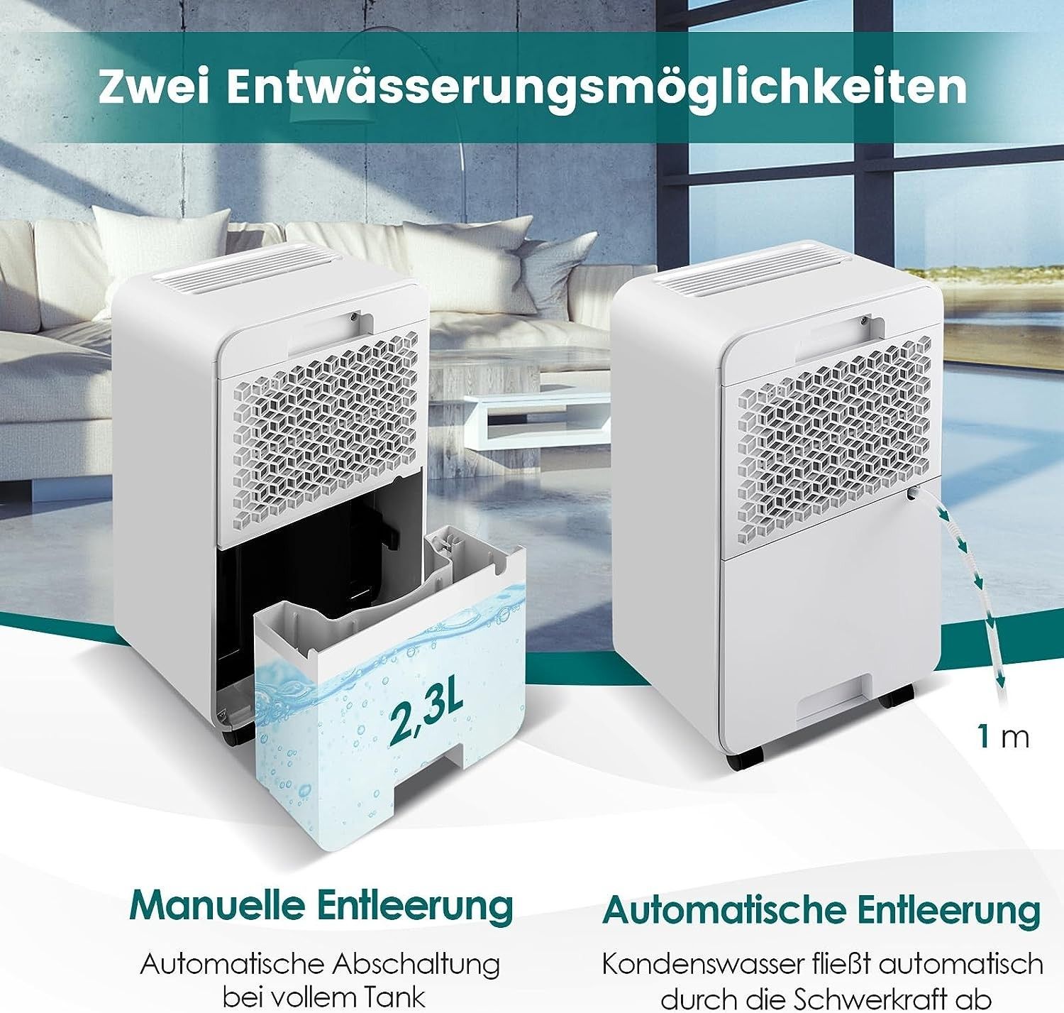 2200 mL Luftentfeuchter mit Schlafmodus, Raumentfeuchter für den Heimkeller, Weiß