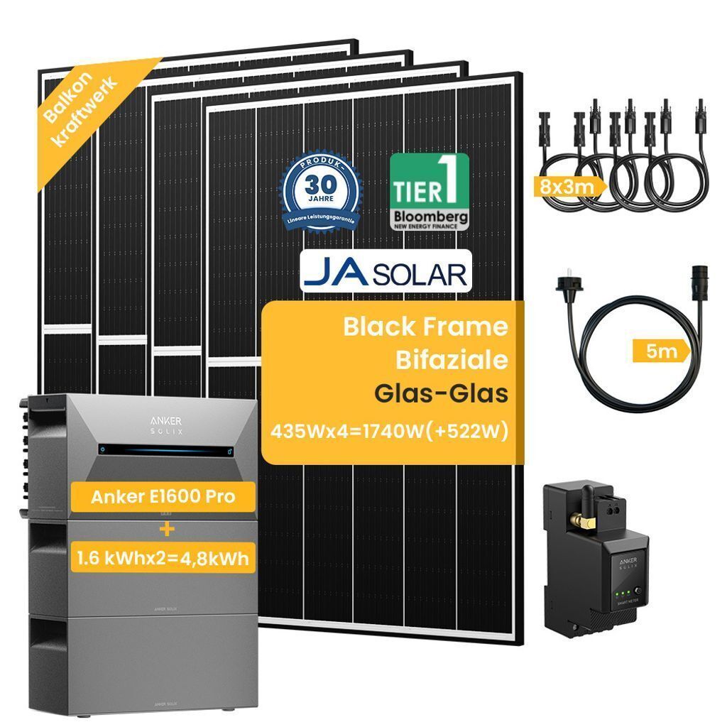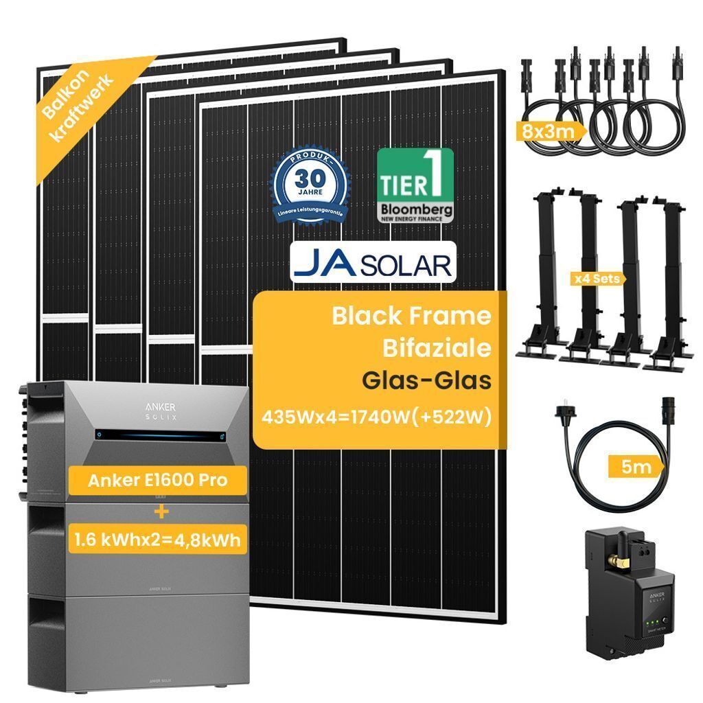 2260W Bifazial Balkonkraftwerk mit 4,8kWh Anker Solarbank 2 E1600 Pro Speicher