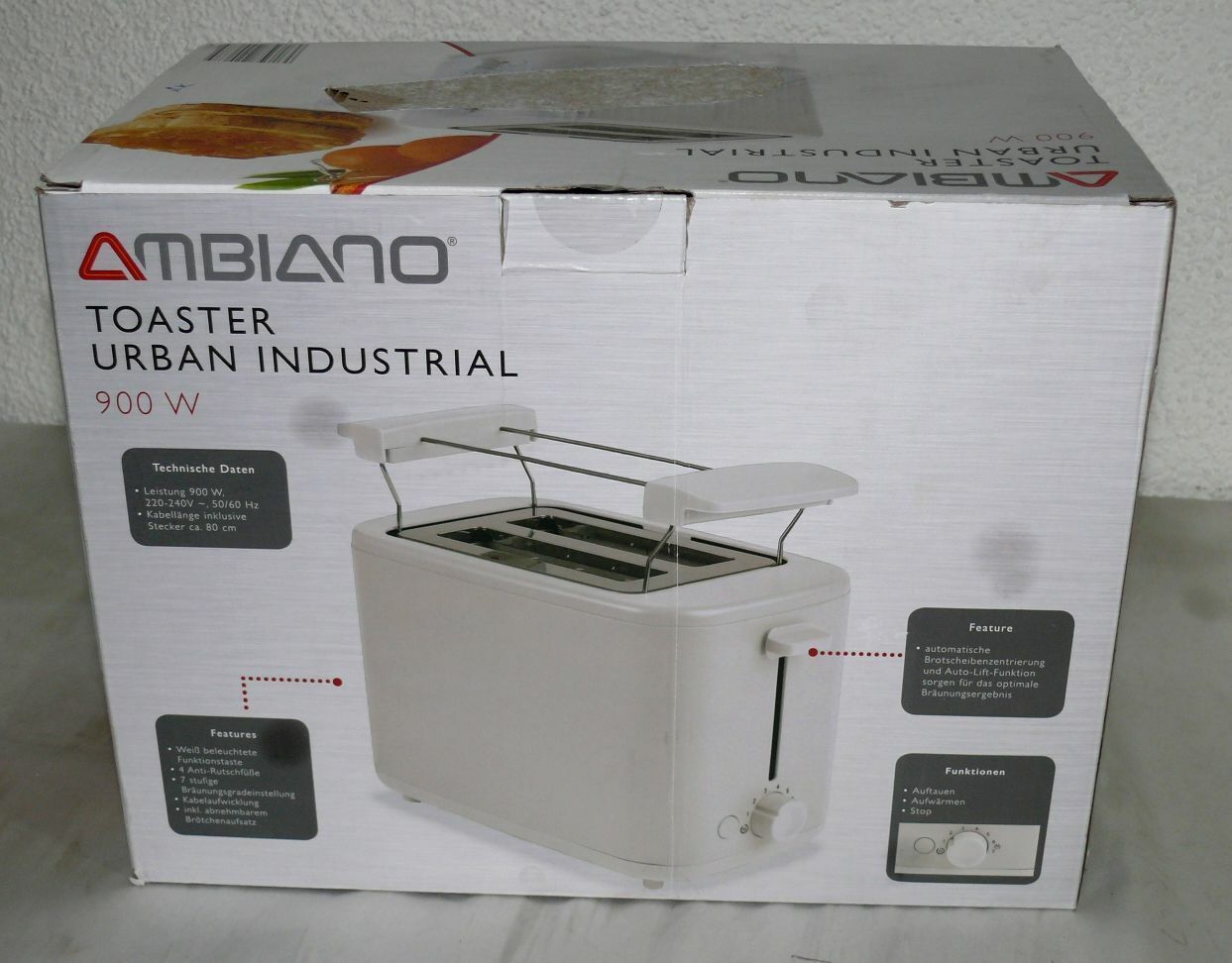 22925A0-W Urban Industrial Doppelschlitz Toaster 870W 7 Stufen Brotaufsatz Weiß
