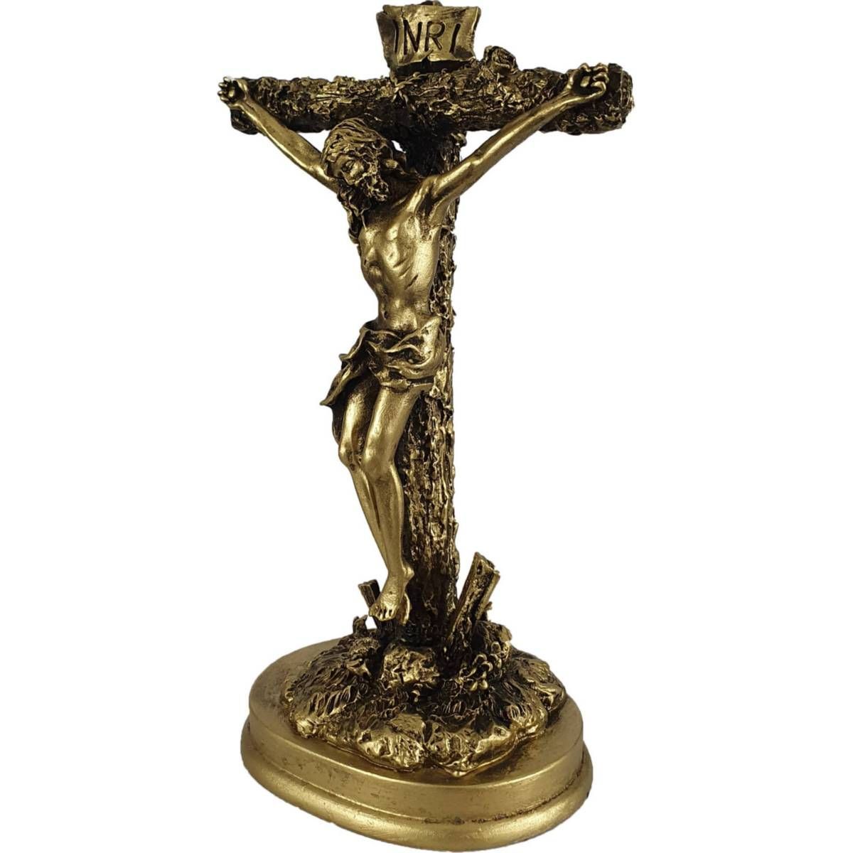 22cm Alabaster Figur Jesus am Kreuz Gold