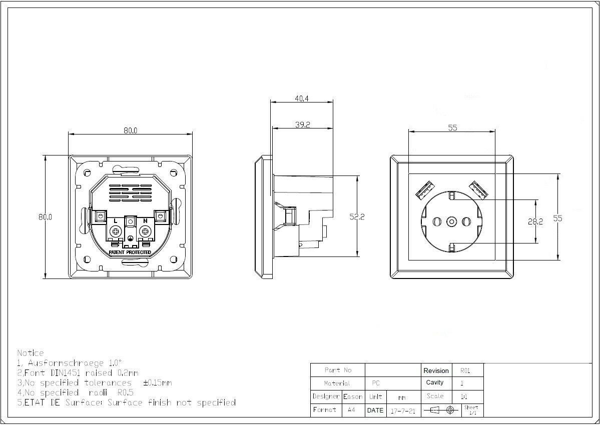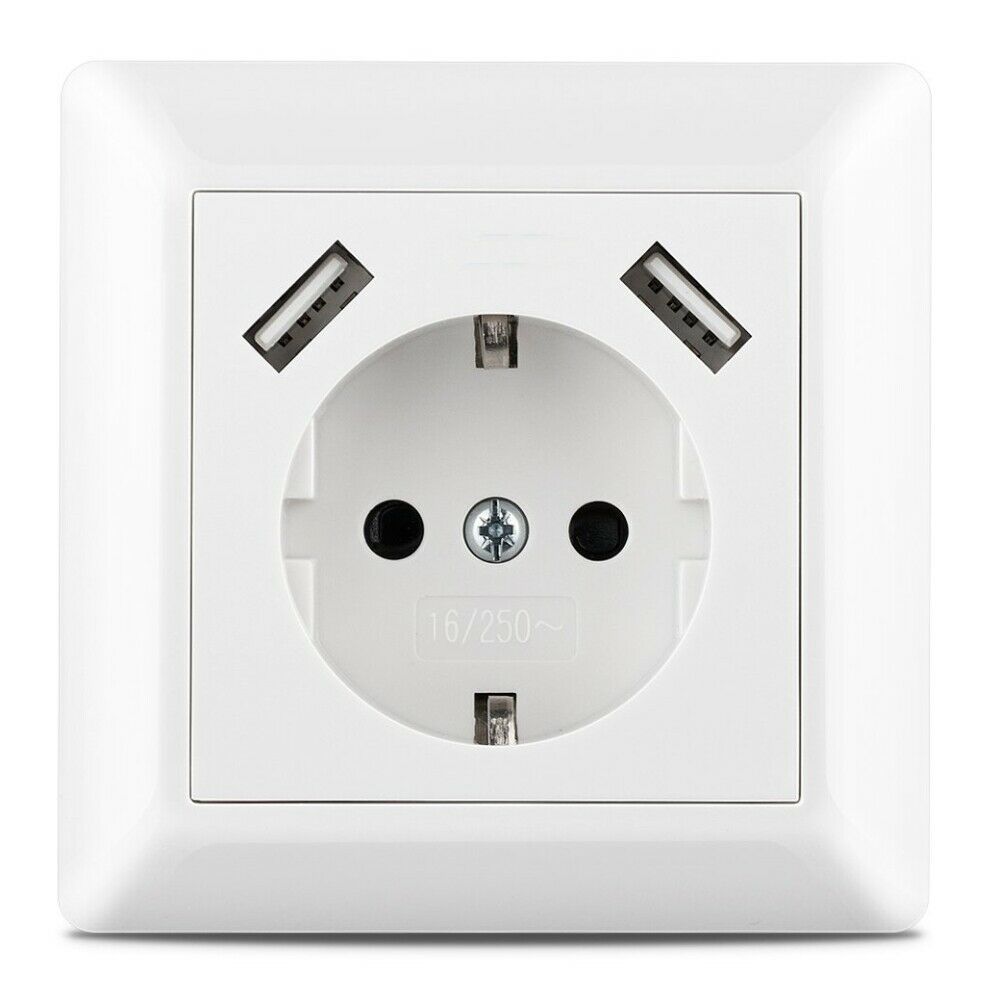 230 V Steckdose mit 2 x USB passend für Gira System 55 E2 Reinweiß Weiß matt