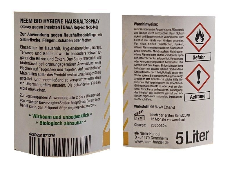 24,40€/L )Neem Bio Hygiene Haushaltsspray 5L Niem gegen Flöhe Schaben Silberfische