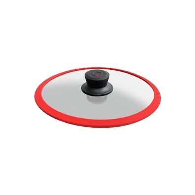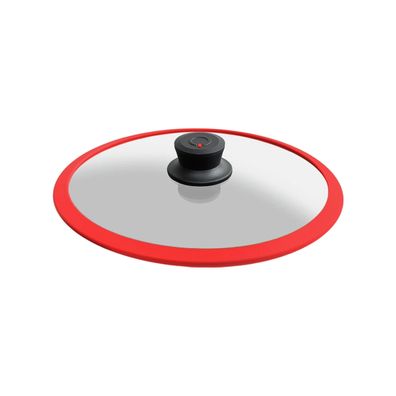 • 28-5R Squality, Glasdeckel mit Silikonring, 28cm, Abgießfunktion, Anti-Schock, ROT