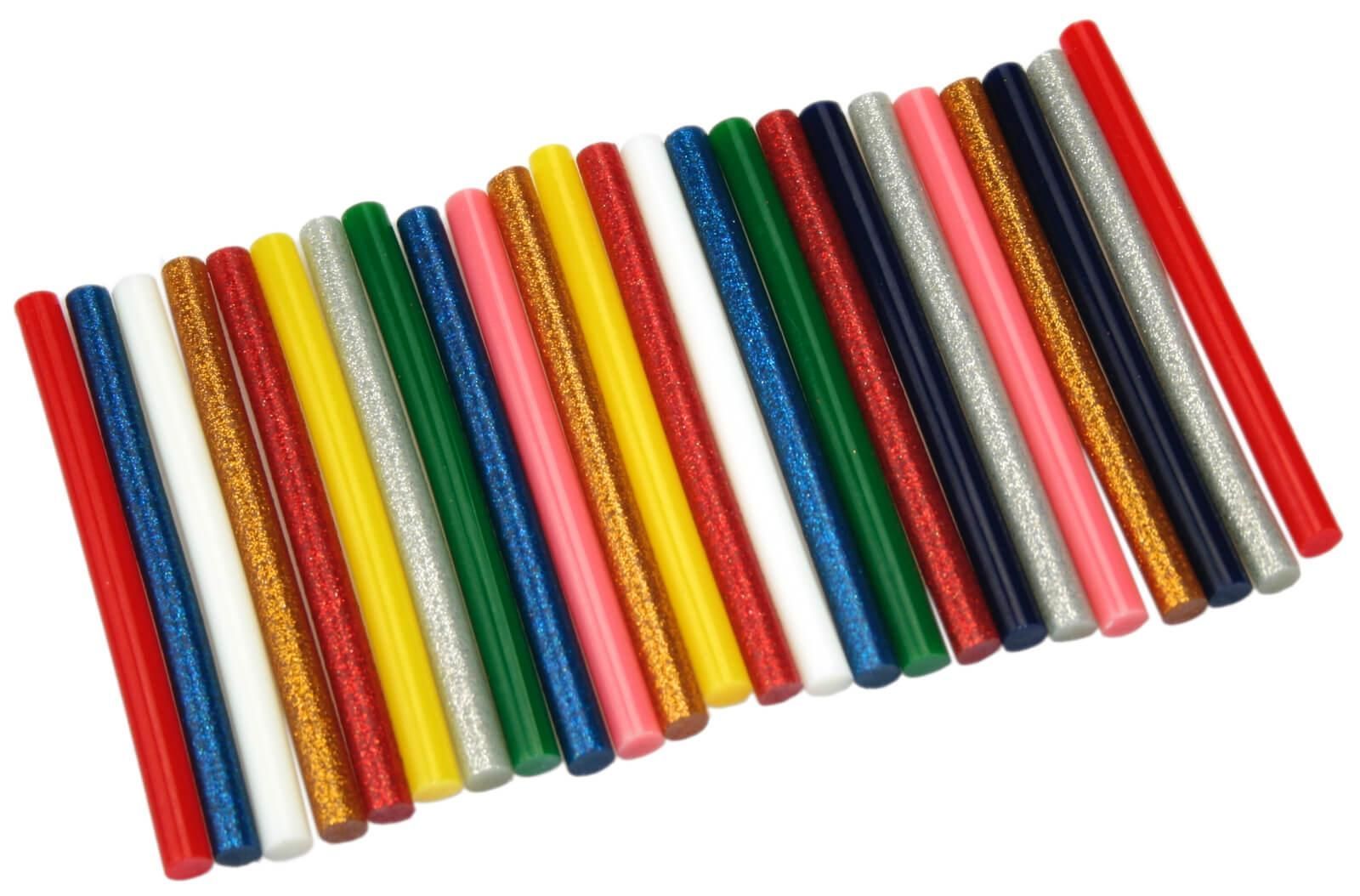 24 Heißklebesticks 7,2mm x 100mm Mini Heißkleber Klebesticks farbig bunt Glitzer