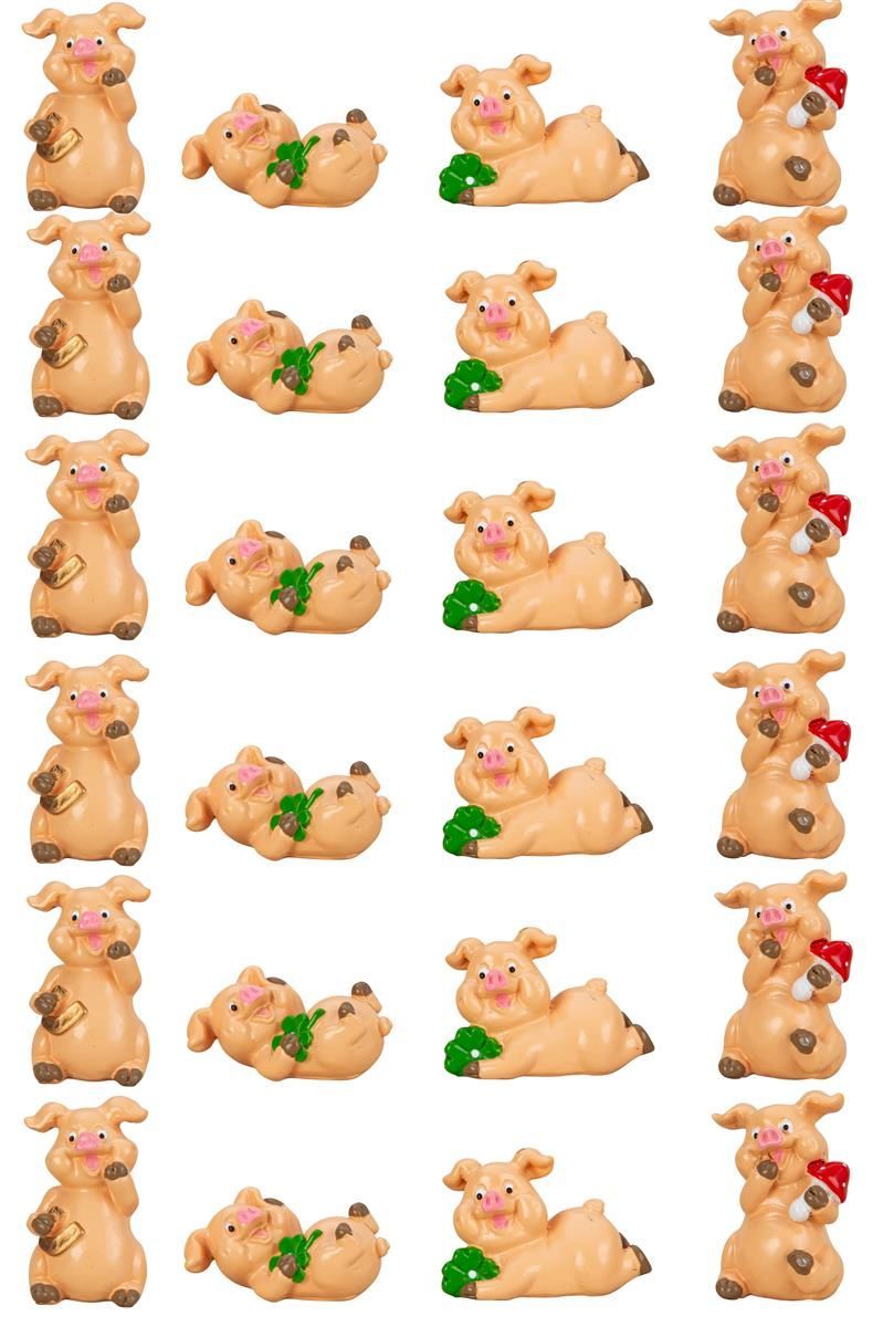 24 Stück Glücksschweine 2,5-4,5cm Tischdekoration Silvester Glückwünsche Deko