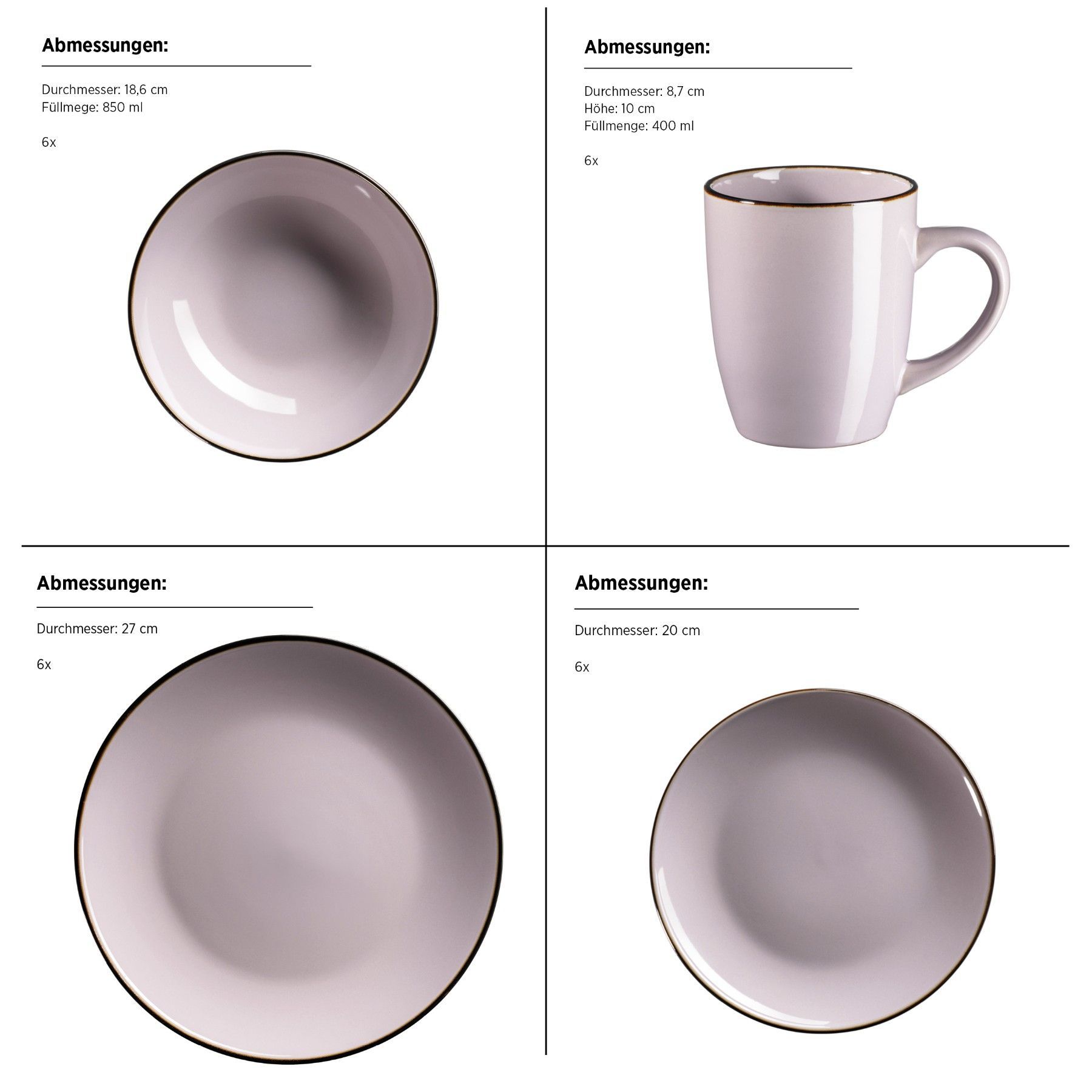 24 tlg. Kombiservice, Metallic Rim für 4 Personen