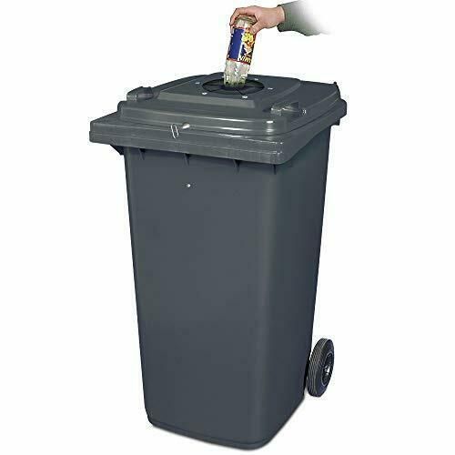 240 Liter Müllbehälter grau, Flascheneinwurf mit Gummirosette, abschließbar