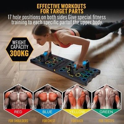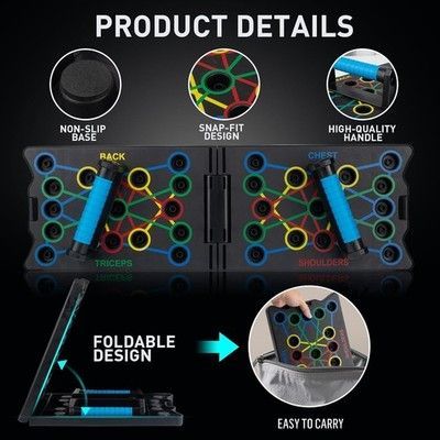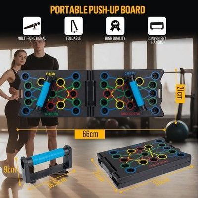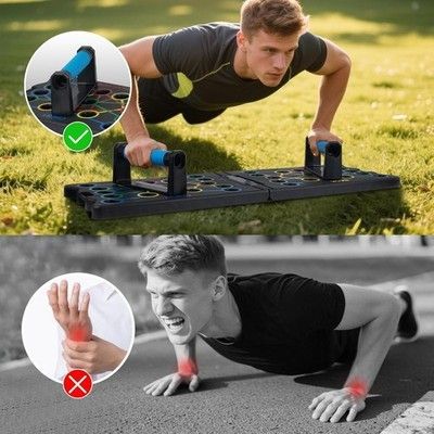 24-in-1-MultifunktionsdesignGezieltes Muskeltraining an Schultern Armen Rücken Bauch und Brust durch verschiedene Griffpositionen und steigert die Muskelkraft effektiv Faltbares DesignTragbar für Büro Reisen und Fitnessstudio ohne Platzprobleme Hochwertiges ABS-MaterialMit Anti-Rutsch-Pads und Belastbarkeit bis 300 Kilogramm für maximale Sicherheit Für alle FitnessniveausGeeignet für Yoga Krafttraining und Rehabilitation Komfortable GriffeSchaumstoff und Gummi für sicheren Halt und gelenkschonendes Training