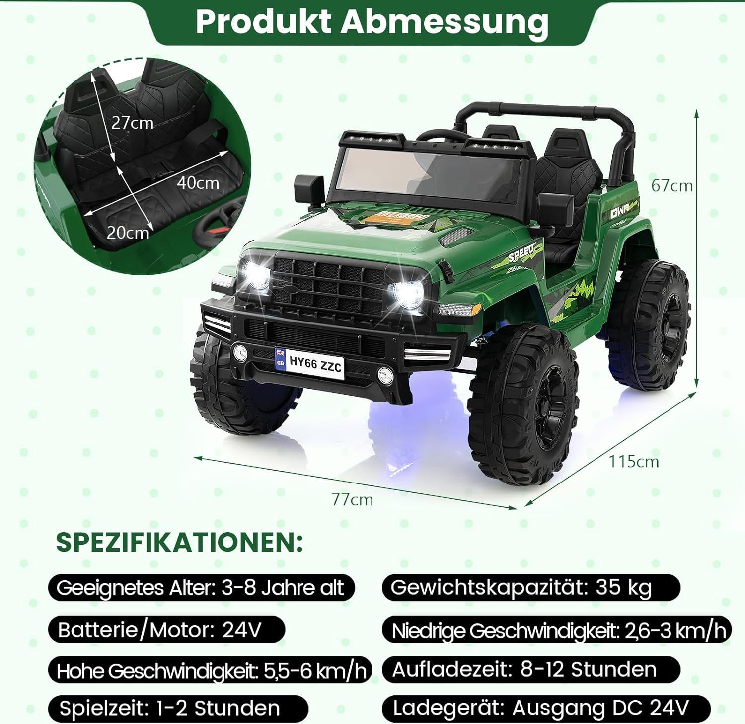 24V Kinder Elektroauto, Kinderauto elektrisch 2 Sitzer, Kinder Auto, Auto