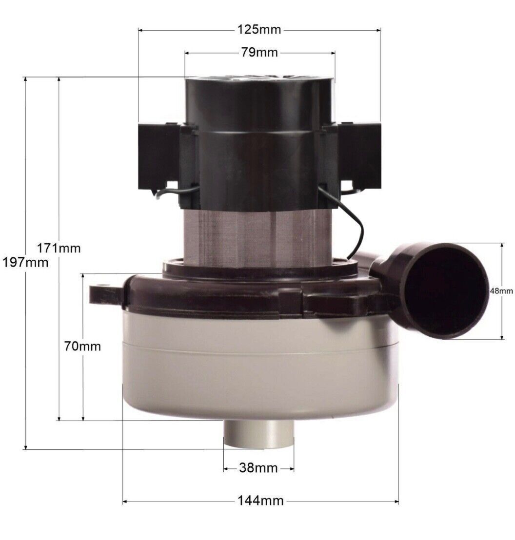 Neuware - Industrieausführung (alle Motoren auf Lager ) mit Rechnung und ausgewiesener Mehrwertsteuer 2-stufige Saugerturbine mit Abluftrohr 24V 430 Watt für Sprühextraktionsgeräte ,Teppich- und Polsterwäscher , Scheuersaugmaschinen , Bodenreinigungsautomaten , Schrubbmaschinen , Kehrsaugmaschinen u