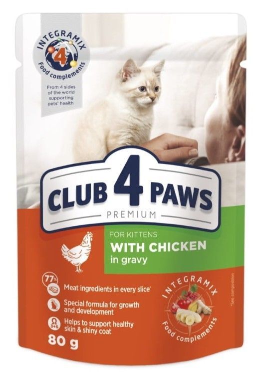 24x CLUB 4 PAWS Premium für Kätzchen Huhn in Soße 80g Nassfutter