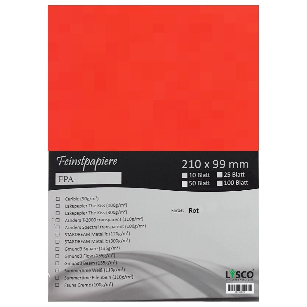 25 Blatt DIN lang Gmund Transparentpapier 100g Farbe rot transparent FPA-122