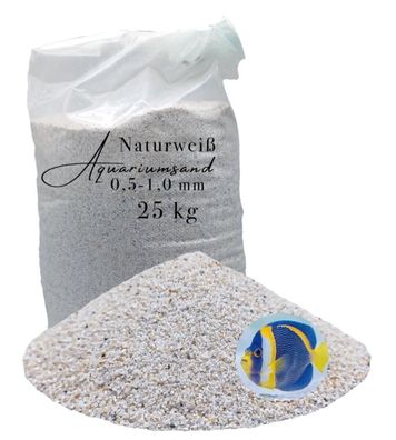 • Aquariumsand weiß 25kg Aquariensand Aquarienkies Aquariumkies 0,63-1,25 mm Sand