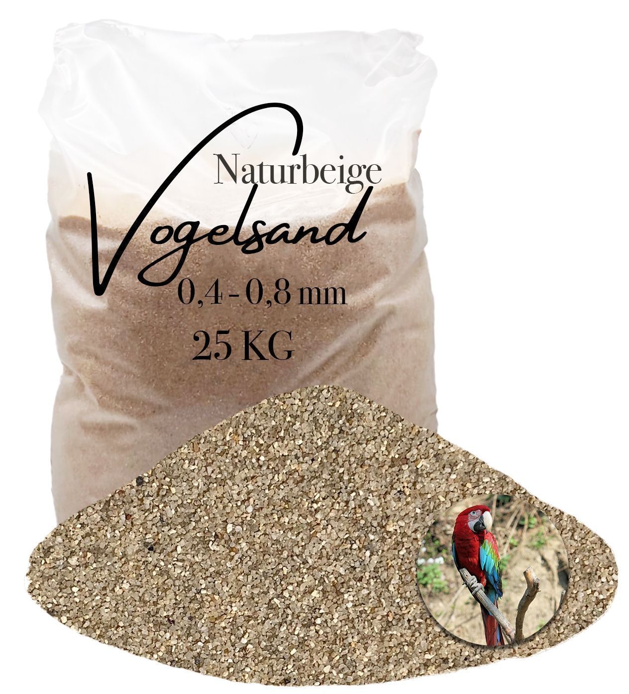 25 kg Vogelsand beige 0,4-0,8mm Bodengrund für Vogelkäfig ohne Zusätze hocherhitzt