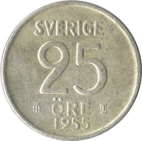 Eine 25 Öre Silbermünze aus Schweden. Das Bild ist nur ein Beispiel da ich mehr als eine habe (daher könnt ihr natürlich auch mehrere wählen) und es daher natürlich verschiedene Jahrgänge sind und es auch optisch Unterschiede gibt. Aber sie sind alle noch aus den Silber Jahrgängen (meistens die .400