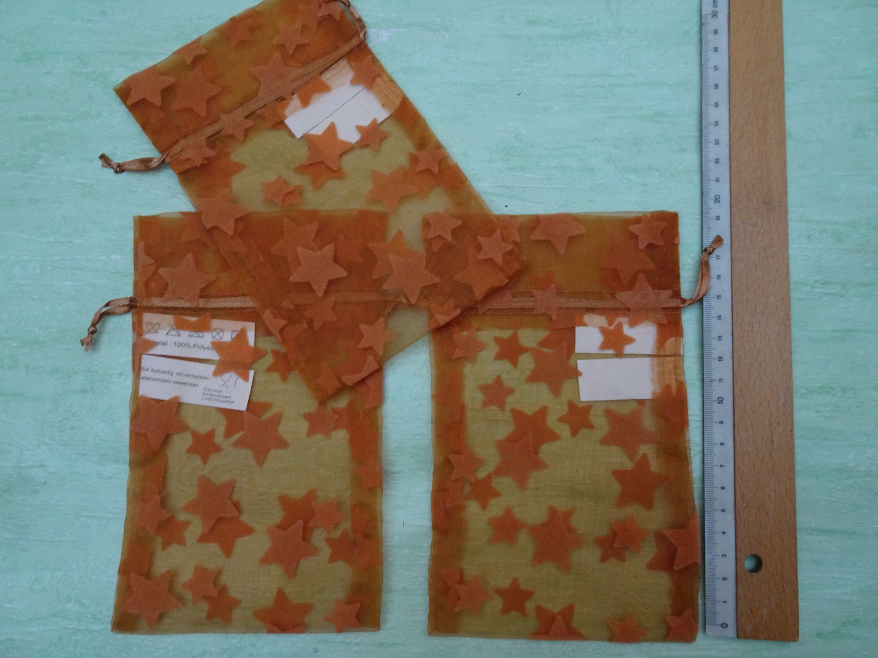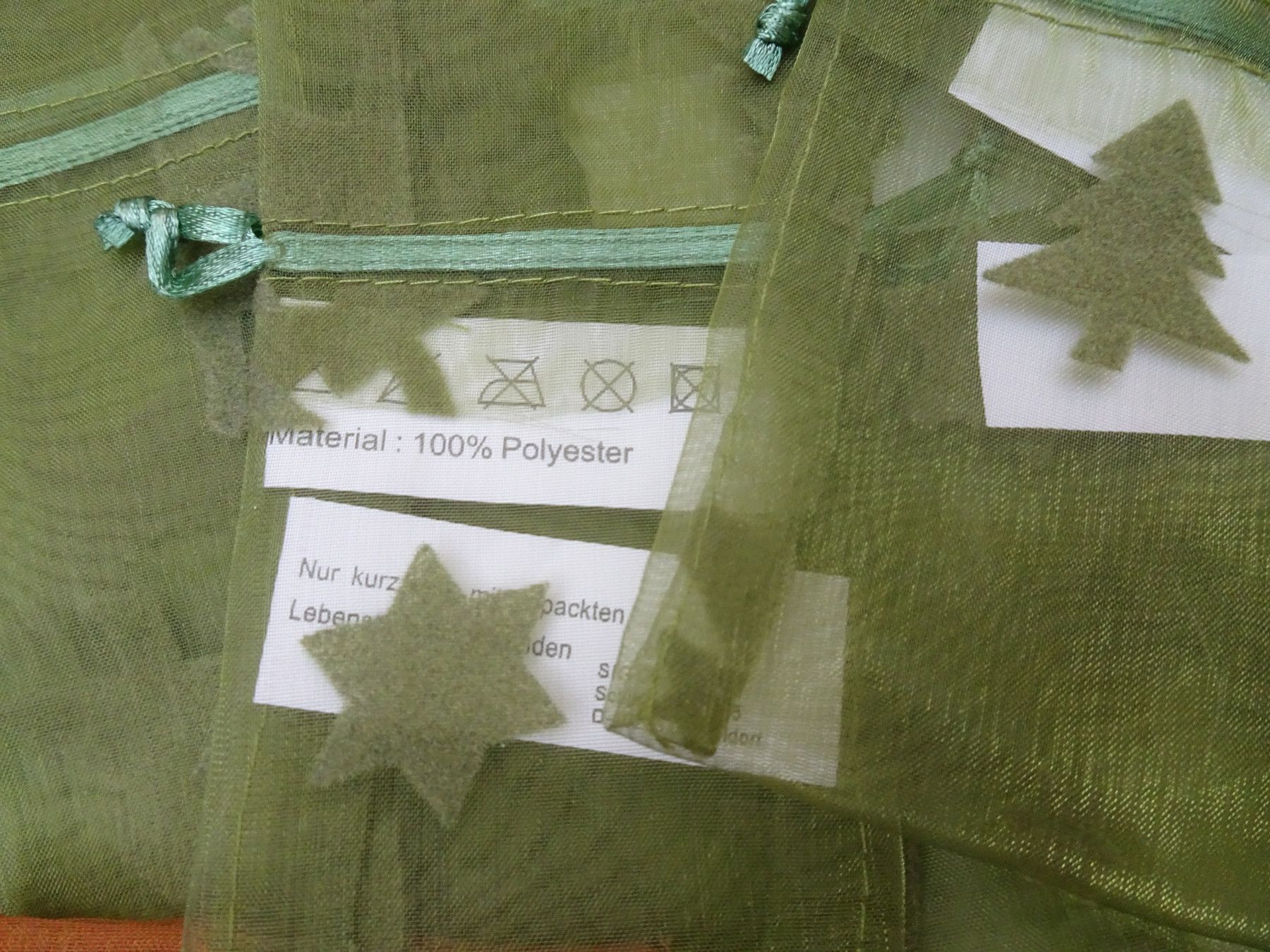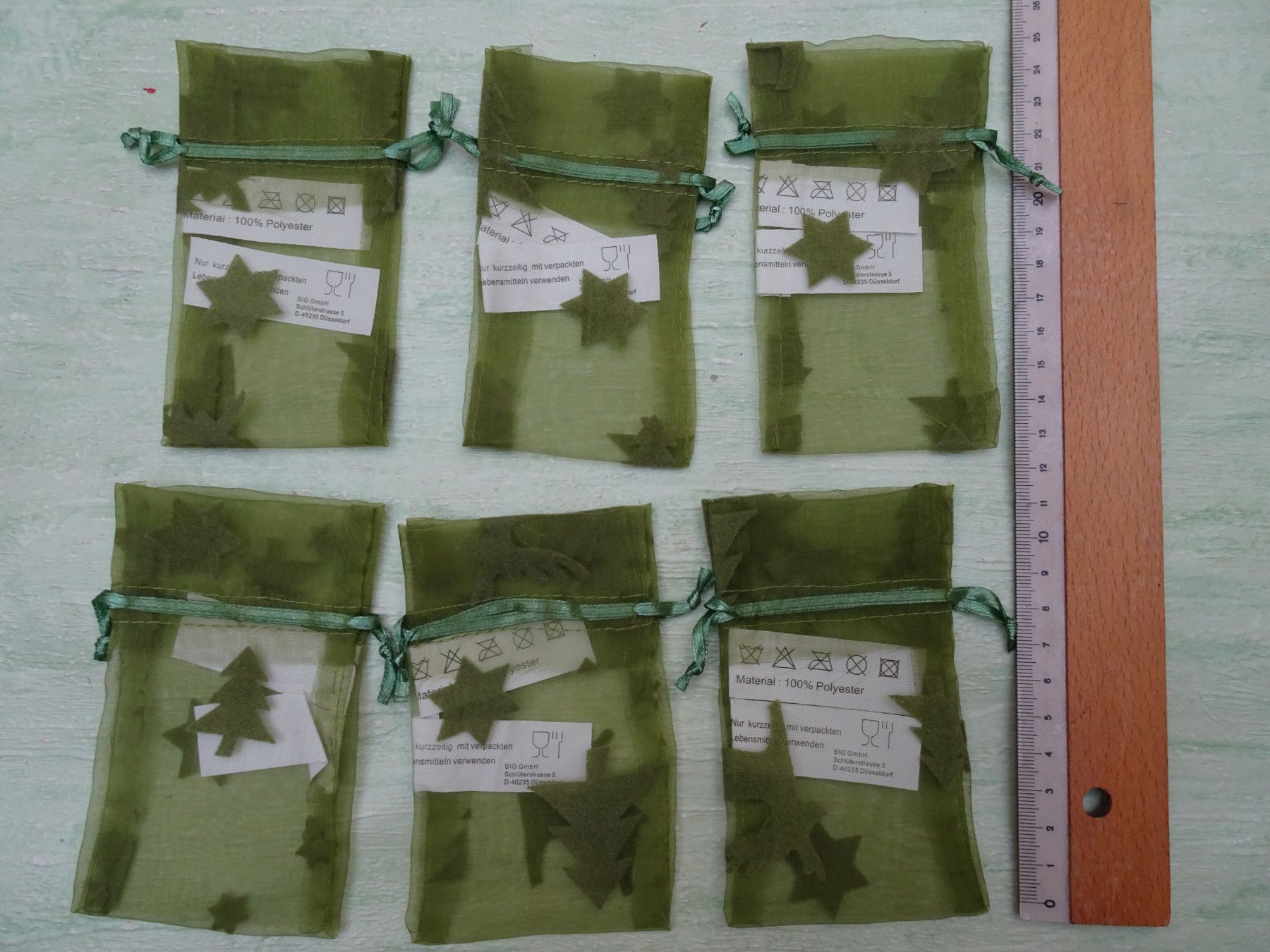 25 Organza Geschenktaschen grün orange Sterne Tannenbäume Zugband