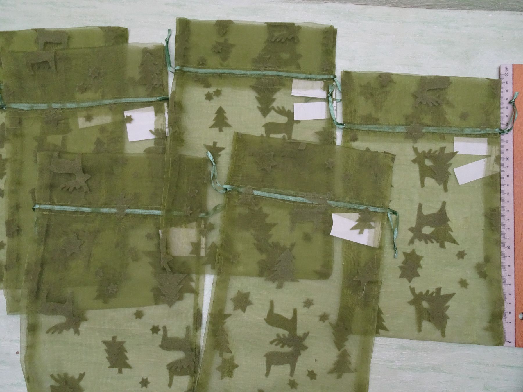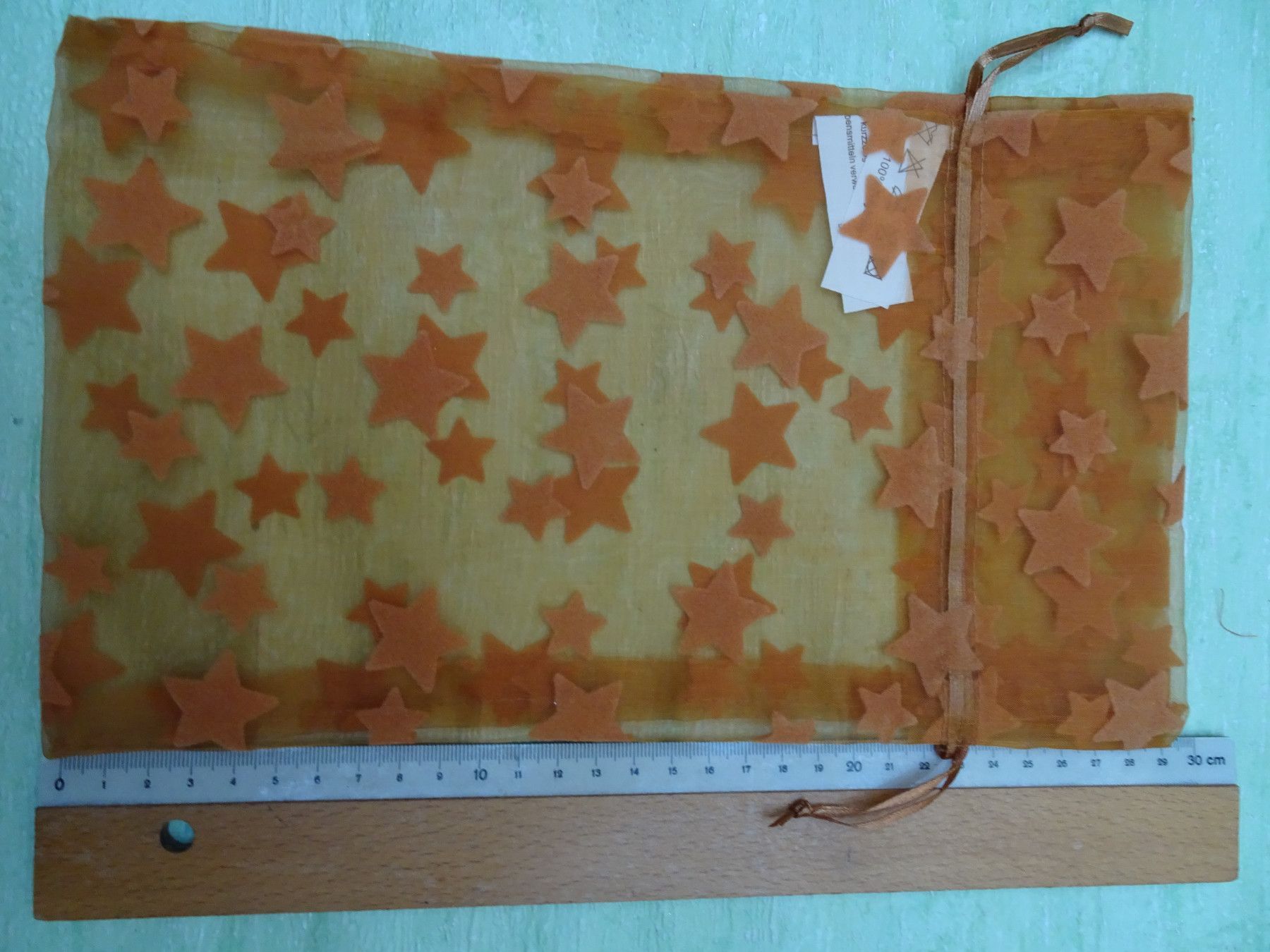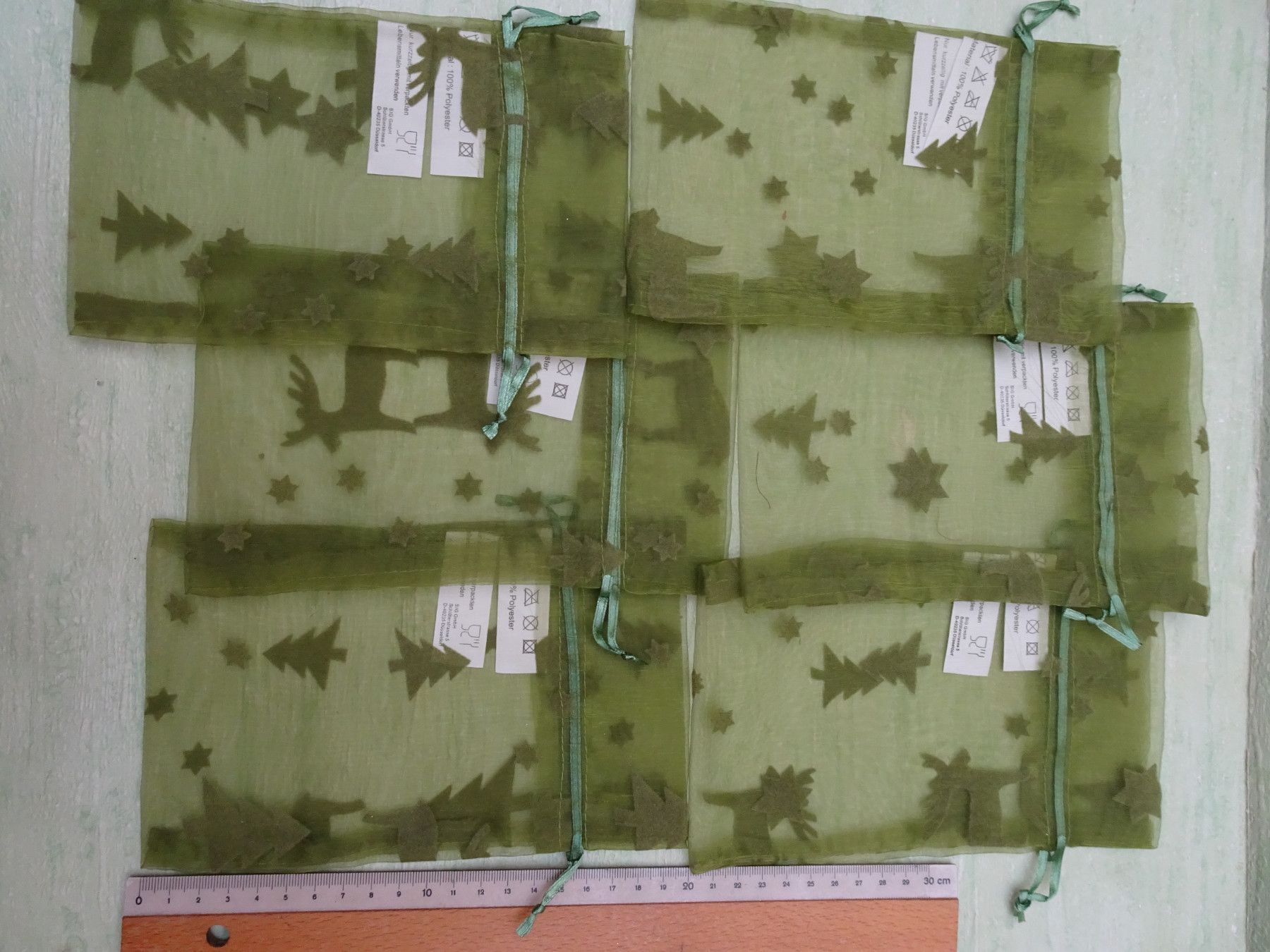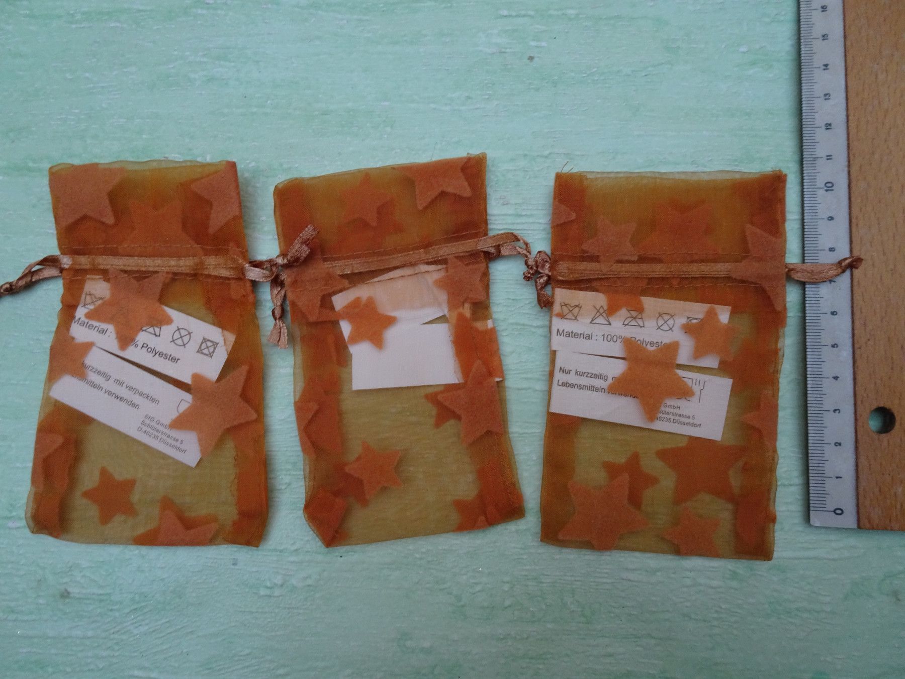 25 Organza Geschenktaschen grün orange Sterne Tannenbäume Zugband