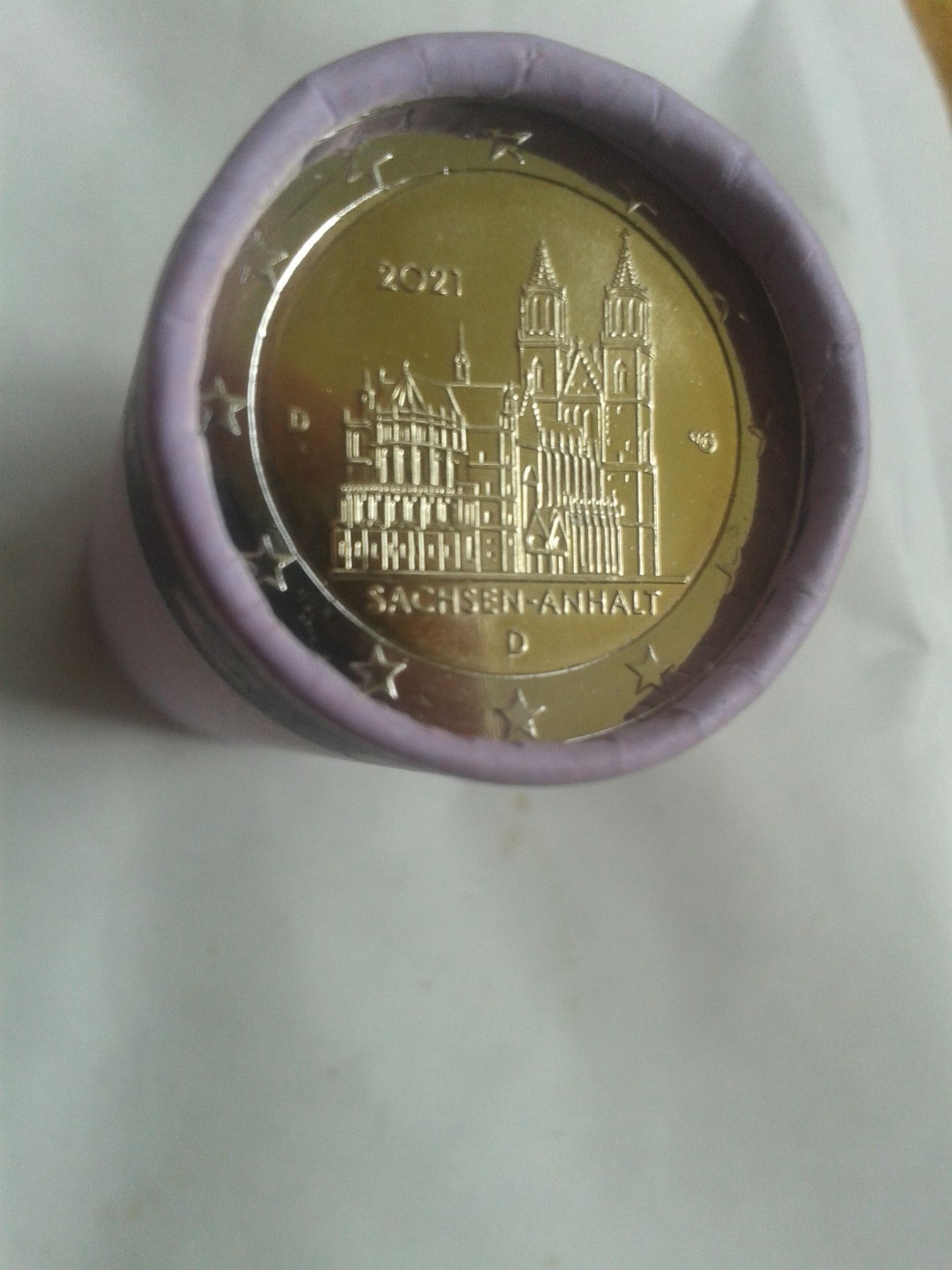 25 x 2 euro 2021 Rolle Sachsen-Anhalt Magdeburger Dom, D (München) Reglementierte Ausagbe durch die Bundesbank, weshalb Rollen sehr selten am Markt angeboten werden... bei Fragen: