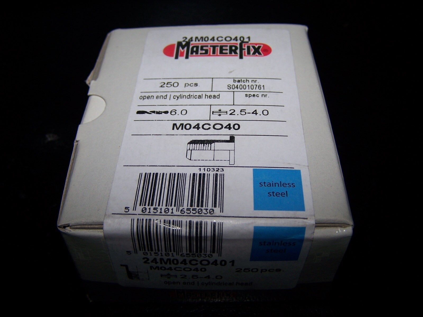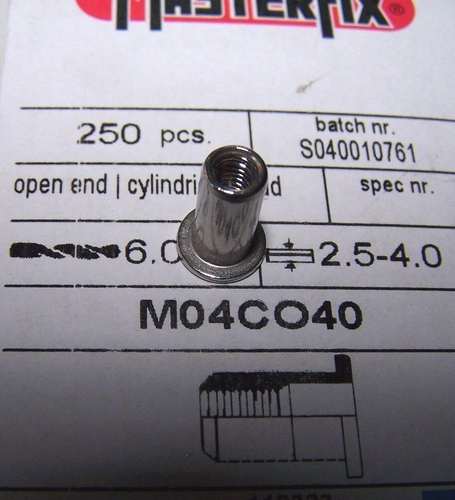 250 Blindnietmuttern M4 Edelstahl A2 Flachkopf 2,5-4,0mm ohne Rändelung #TC002