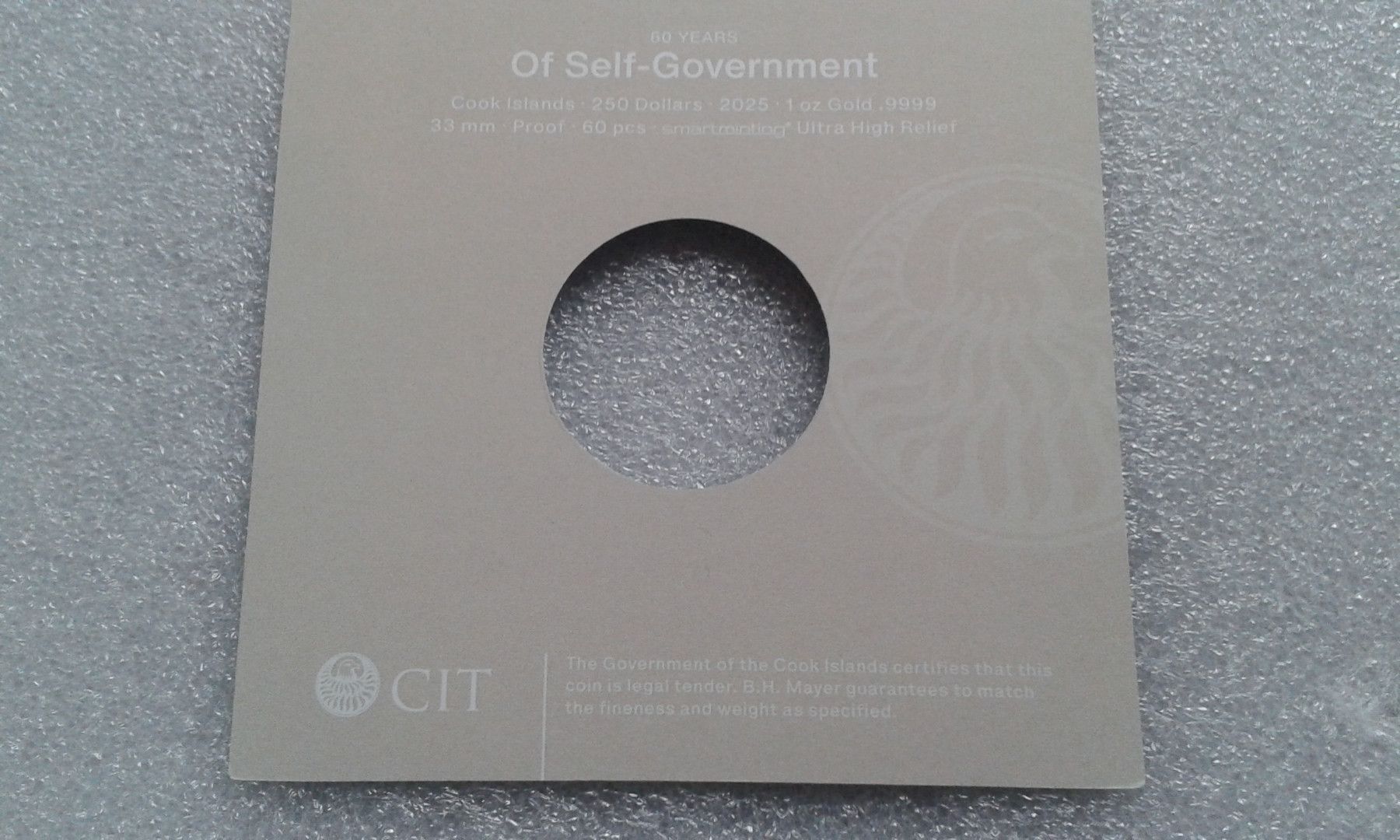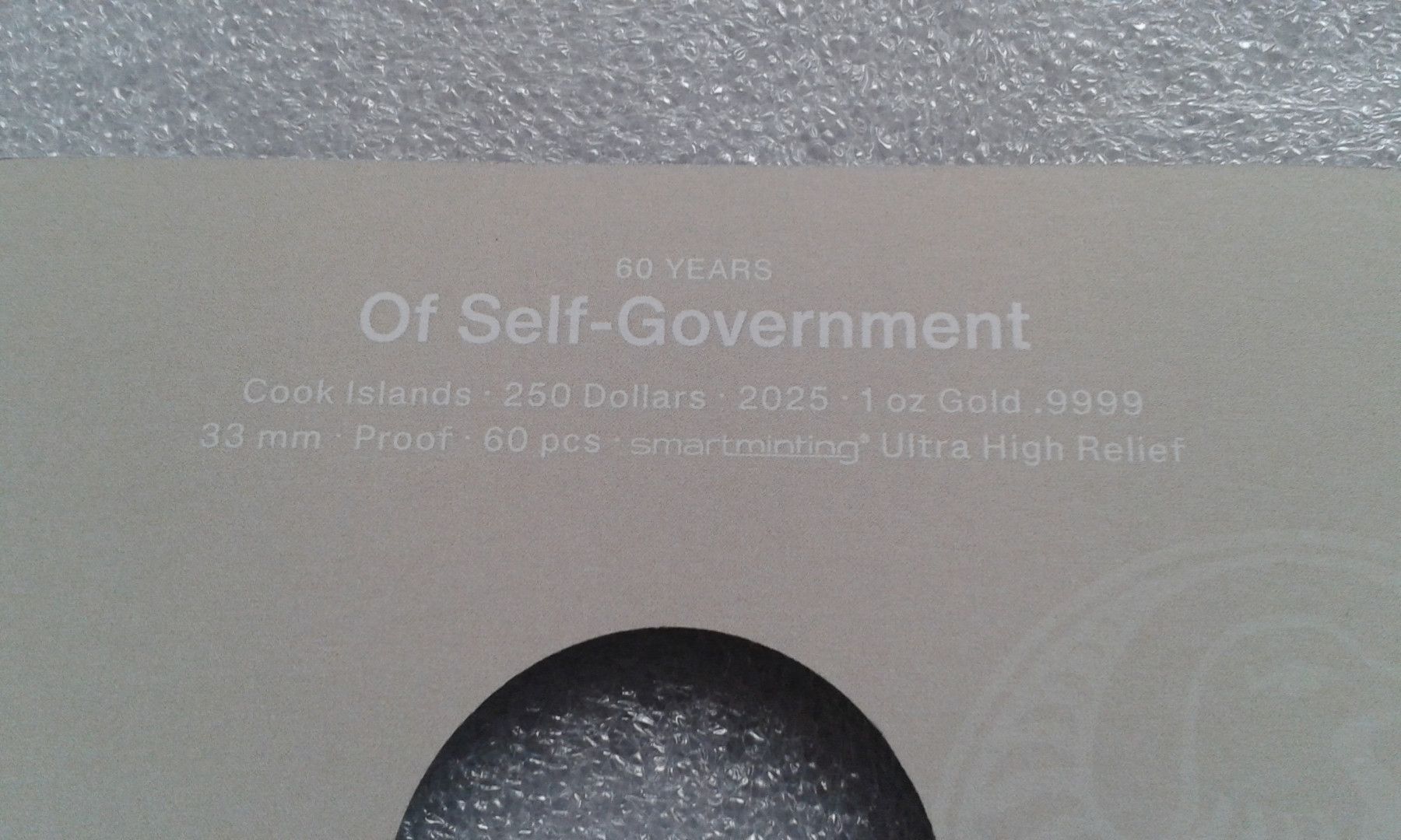 250 Dollar 2025 Cook Islands Selfgovernement Selbstbestimmung 1 Unze Gold - nur 60 Ex