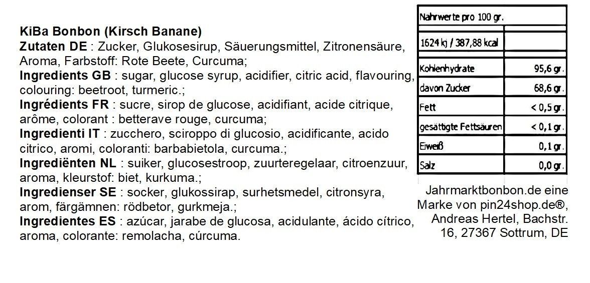 250 gr. KIBA Kirsch Banane Cocktail Bonbon von Jahrmarktbonbon