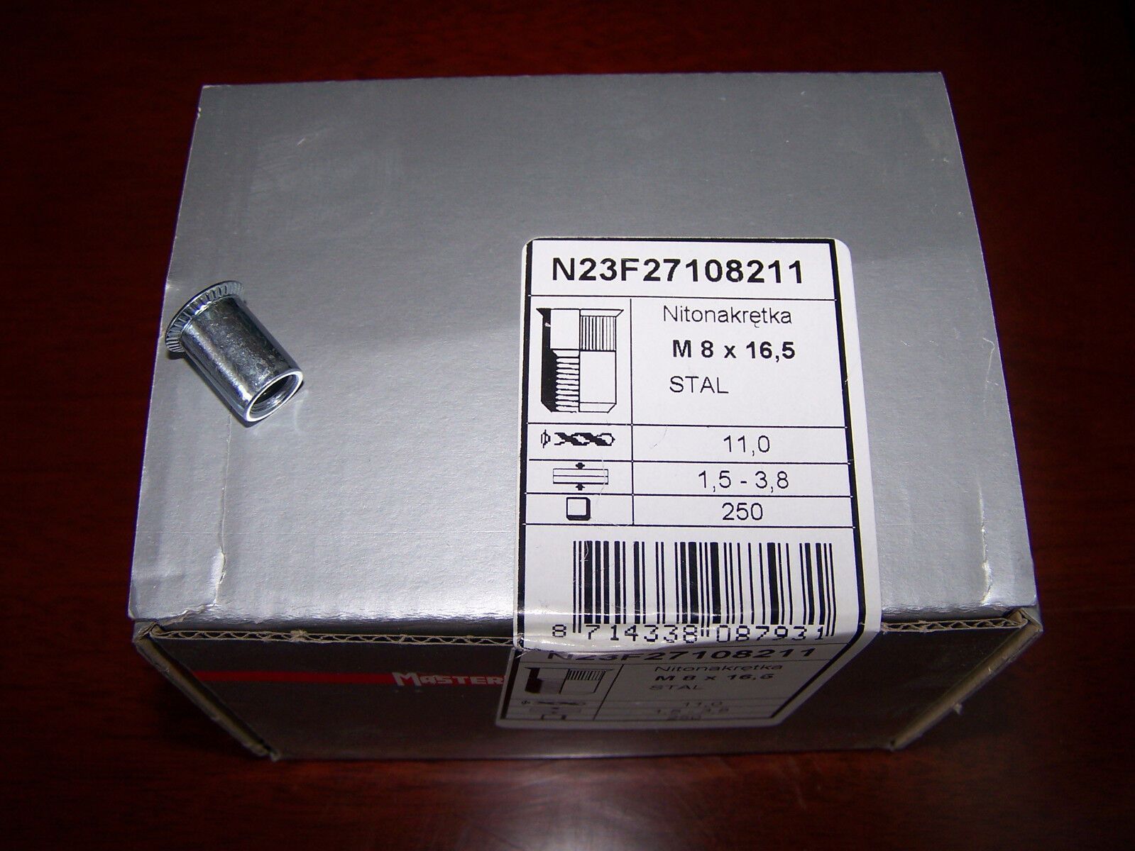 250 M8 Stahl vz Senkkopf Blindnietmuttern UK gerändelt offen KB:1,5-3,8mm #PL011