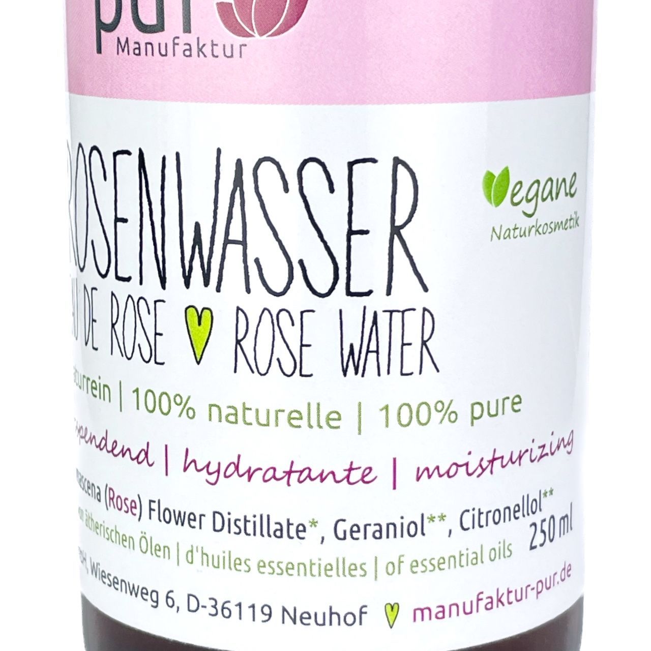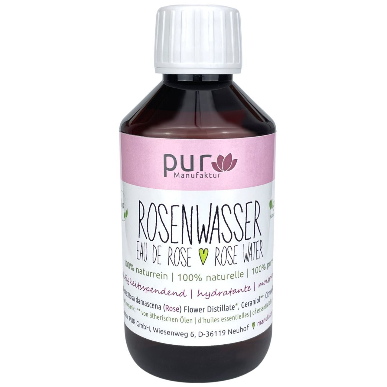 250 ml Rosenwasser bio 100% naturrein pure organic Rose Water in PET