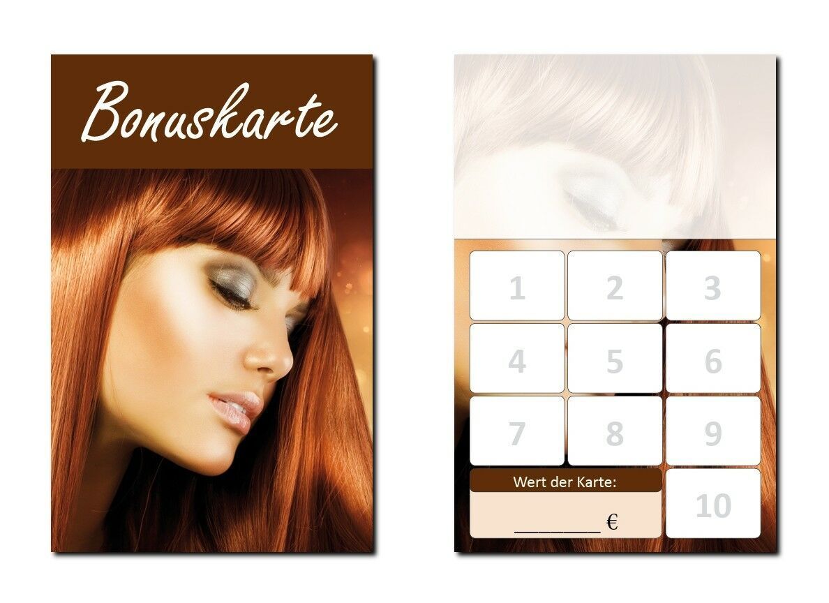 250 Stück Treuekarten Bonuskarten Friseur mit 10 Stempelfelder Frisör (BOK-412)