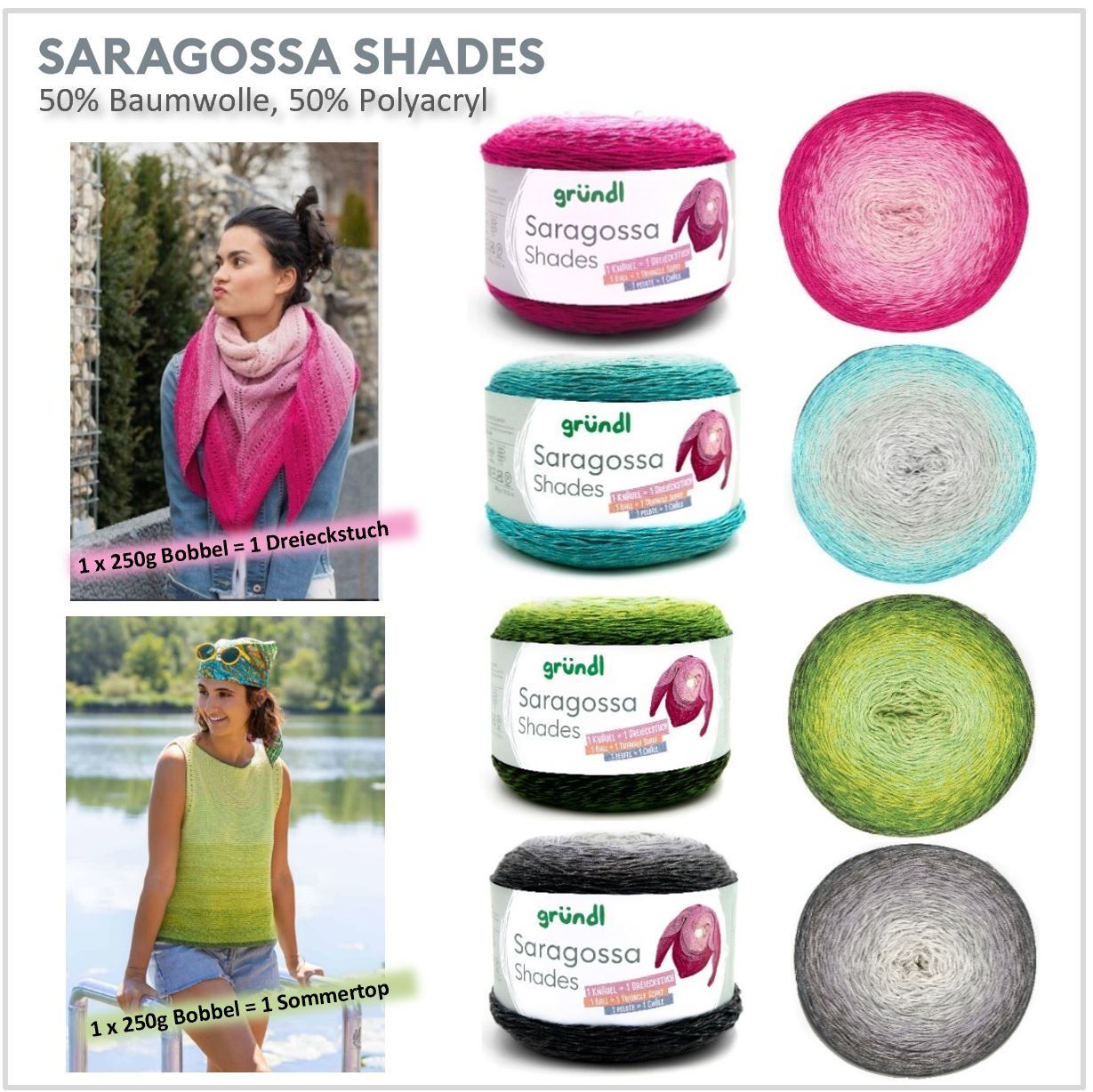 250g Gründl Saragossa Shades Farbverlaufsgarn Stricken Häken Baumwolle pink