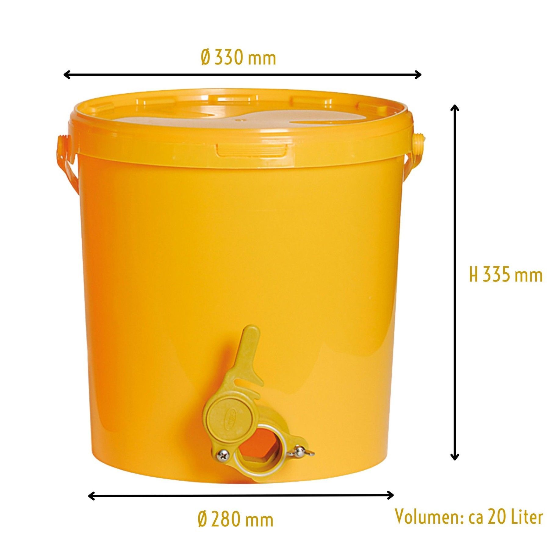 25kg Honigeimer Abfülleimer Hobbock mit Auslaufhahn Kunststoff gelb Honigeimer