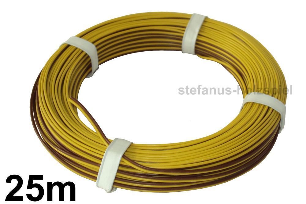 25m Litze 2-adrig gelb-braun 2x18x0,10 Kabel 0,14 mm² für Modellbahn