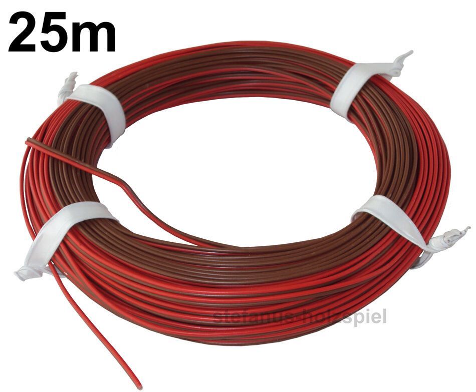25m Litze 2-adrig rot-braun 2x18x0,10 Kabel 0,14 mm² für Modellbahn braun-rot