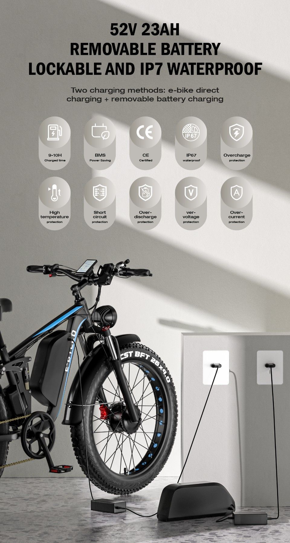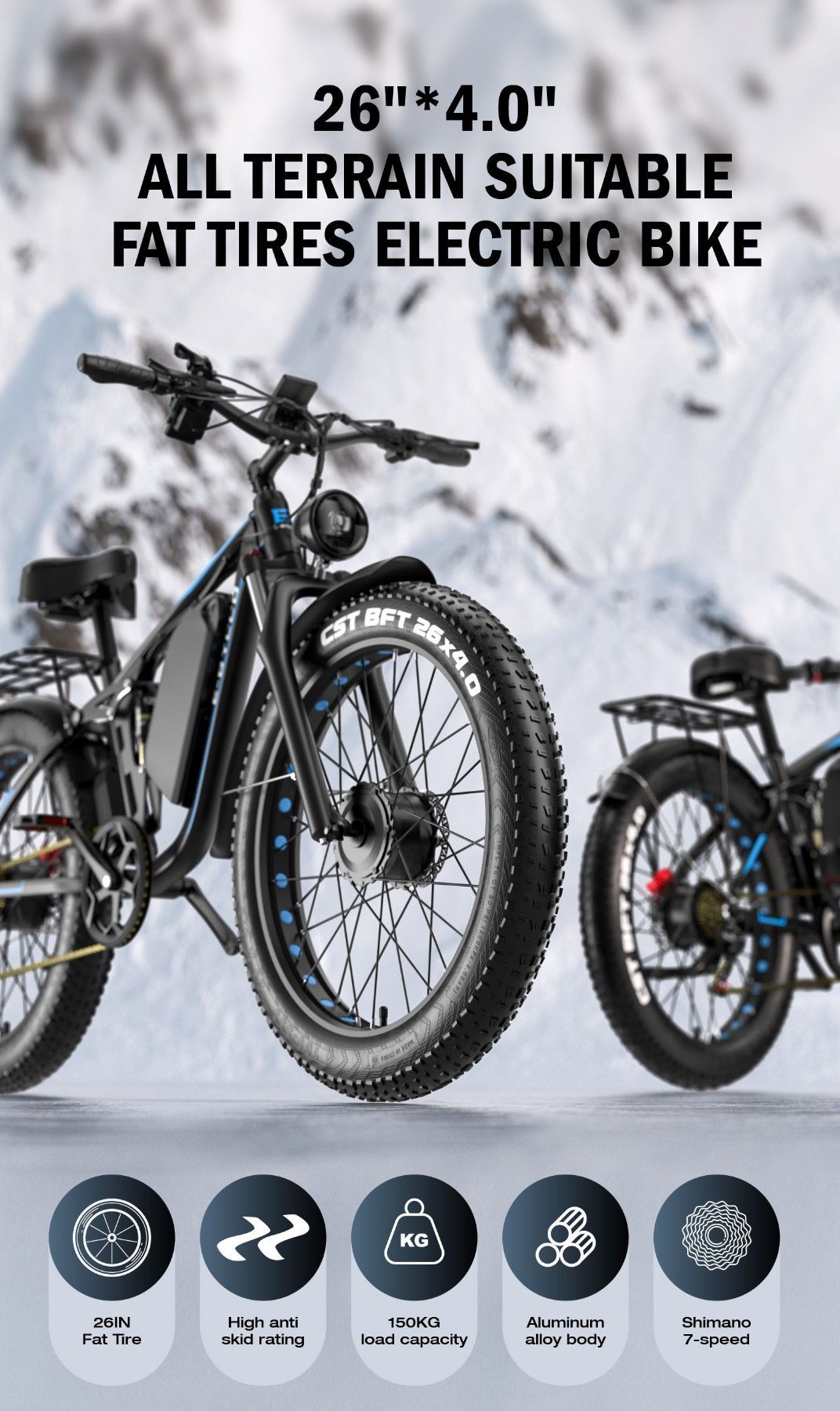 26 * 4.0 Zoll Elektrofahrrad Mountain-E-Bike Doppelter Motor Li-Ionen-Akku 52 V 23 AH