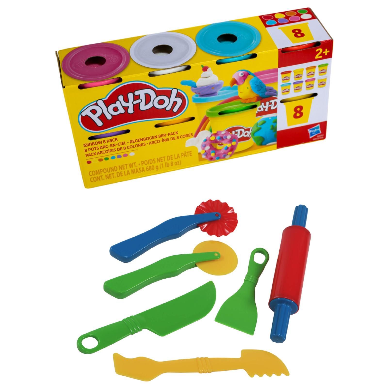 26,46 EUR/kg Play-Doh Regenbogen Knete 8er Pack mit 6tlg. GOWI Knetwerkzeug Set