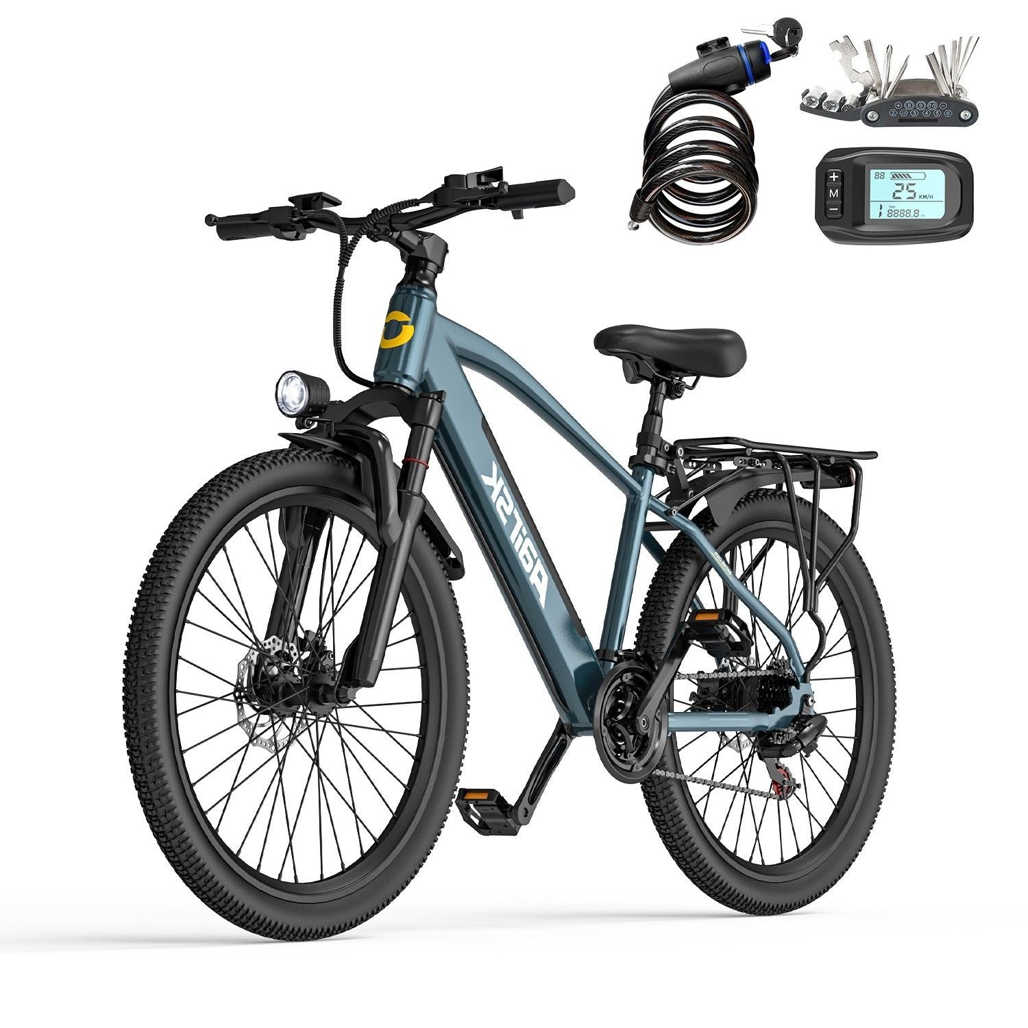 26" E-Mountainbike mit abnehmbarer 36V 13Ah Akku 250W E-MTB E-Bike mit Gepäckträger