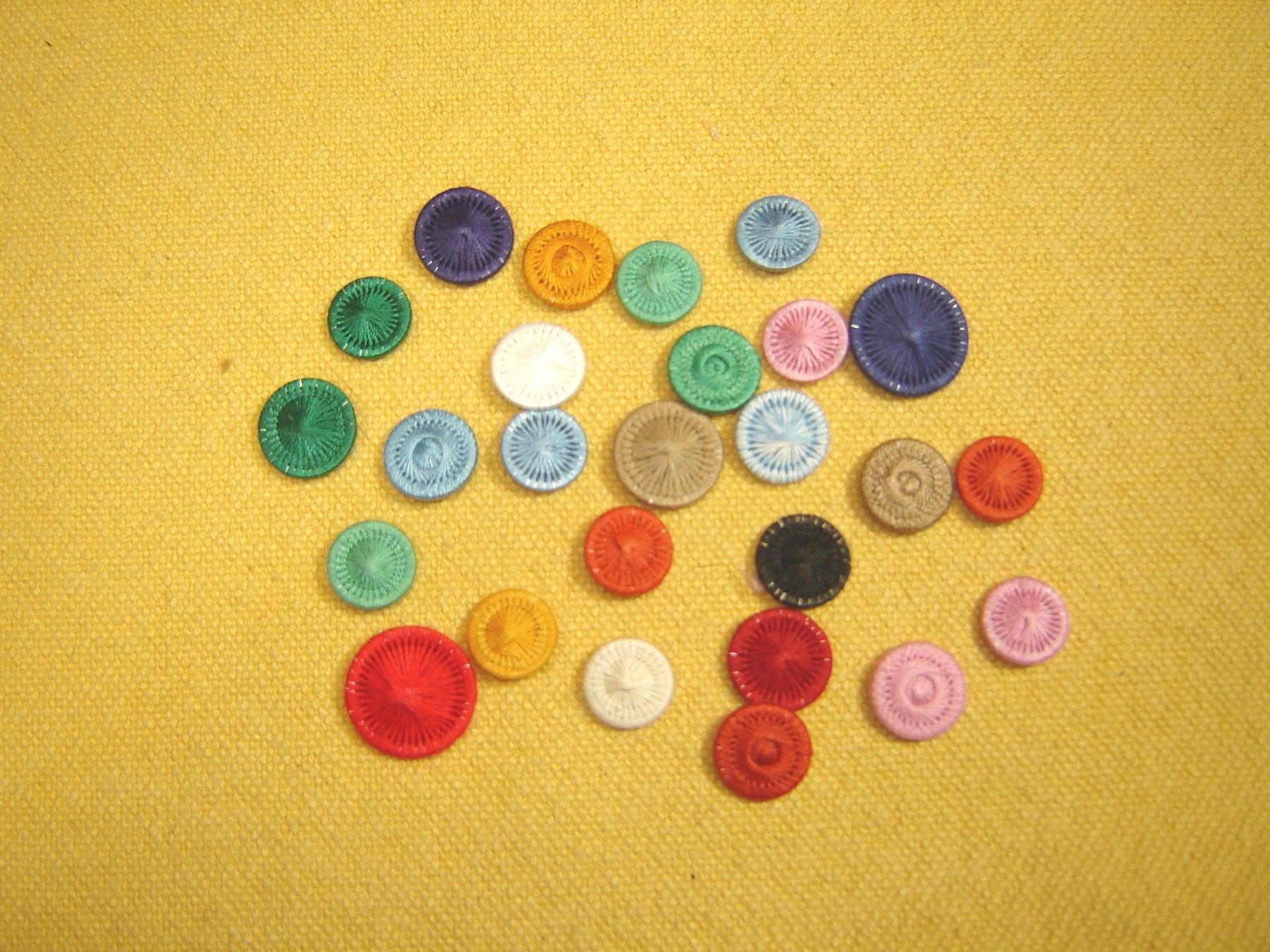 26 Knöpfe Zwirnknopf 2farbig mit Muster verschiedene bunte Farben unf Größen K209