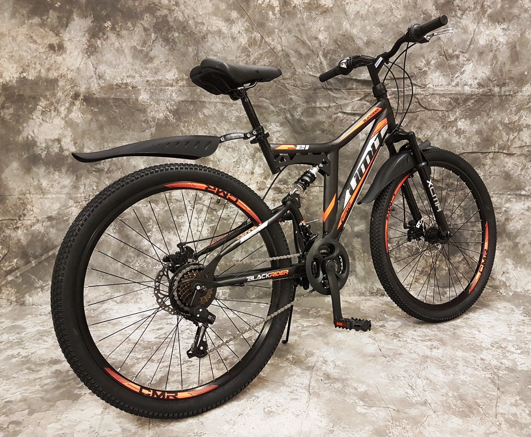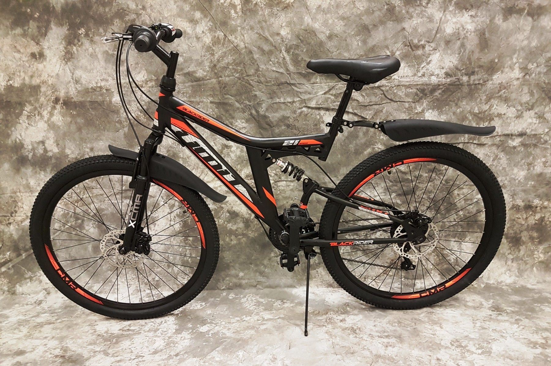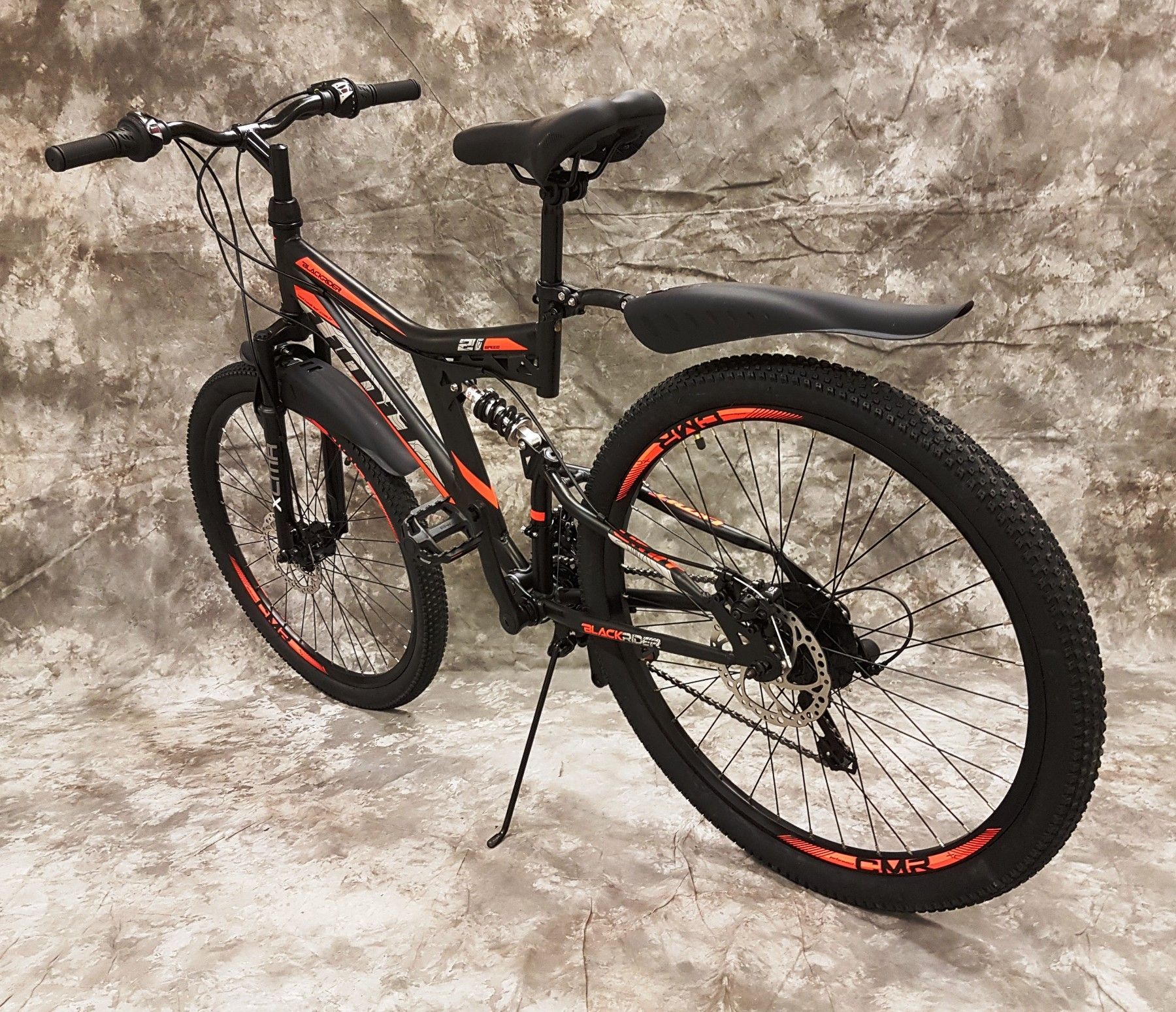 26" MTB Vollgefedert 21-Gg Shimano & Scheibenbremsen & Schutzbleche 2638-SCHW.-ORANGE