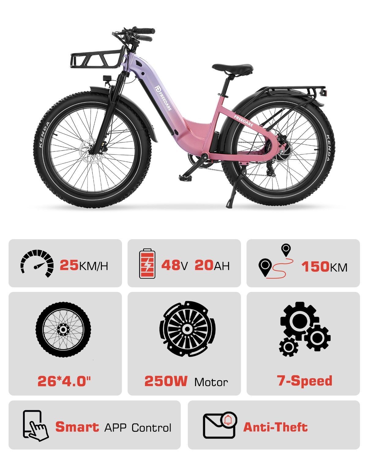 26-Zoll Damen E-Bike Citybike mit BAFANG 250W Motor 48V 20Ah Samsung Akku, Fat Tires