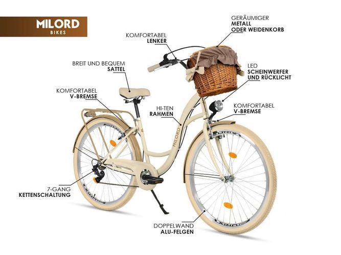 MILORDBIKES 26 Zoll Damenfahrrad MILORD Citybike Mit Korb Stadtrad Vintage Rosa Fahrrad 7 Gänge
