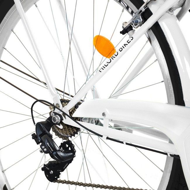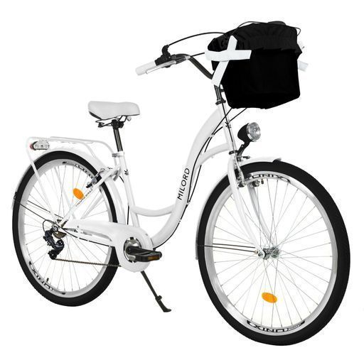 MILORDBIKES 26 Zoll Damenfahrrad MILORD Citybike Mit Korb Stadtrad Vintage Weiss Fahrrad 7 Gänge