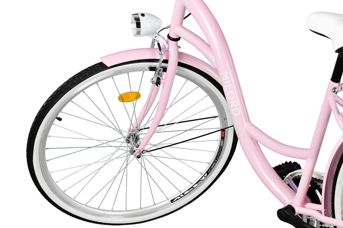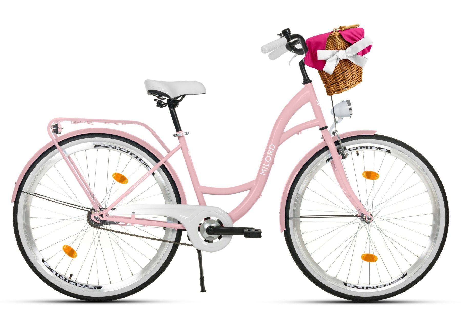MILORDBIKES 26 Zoll Damenfahrrad MILORD Citybike Mit Weidenkorb Stadtrad Pink Fahrrad 1 Gang