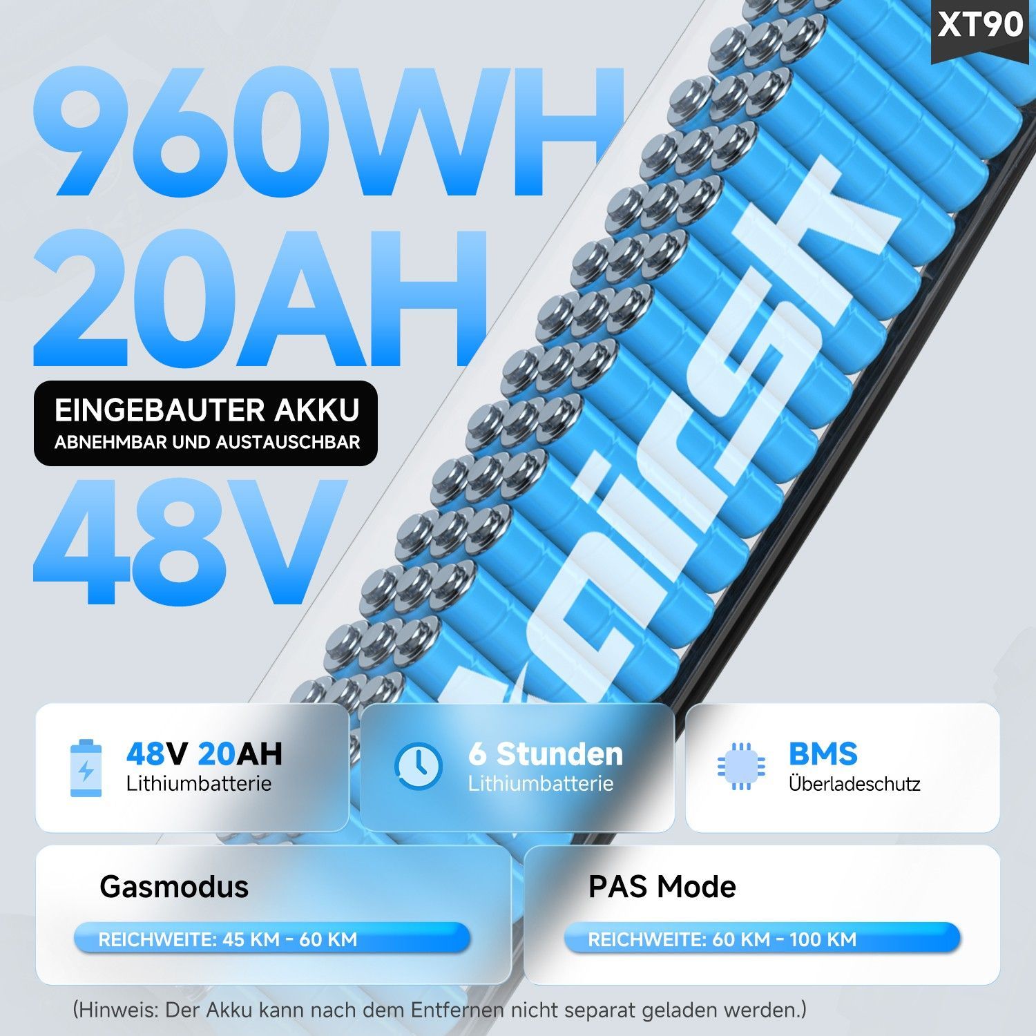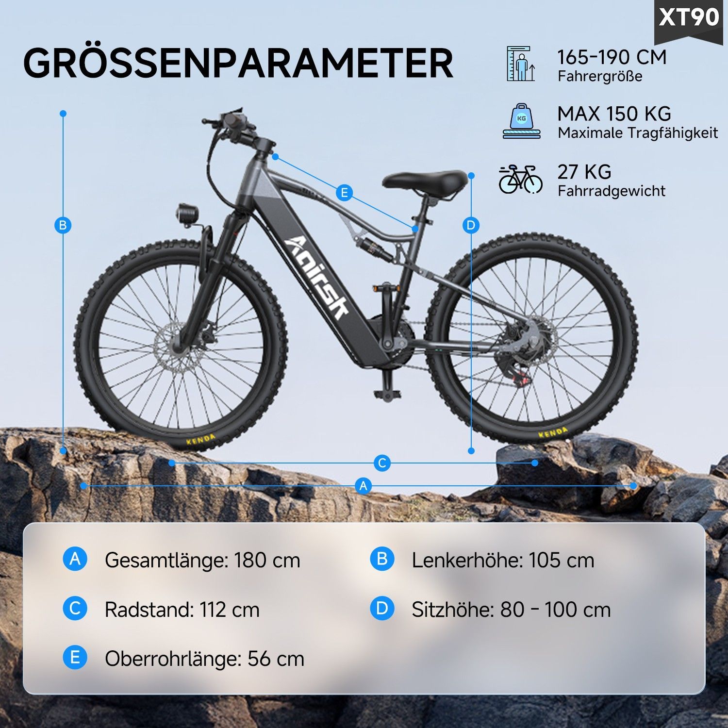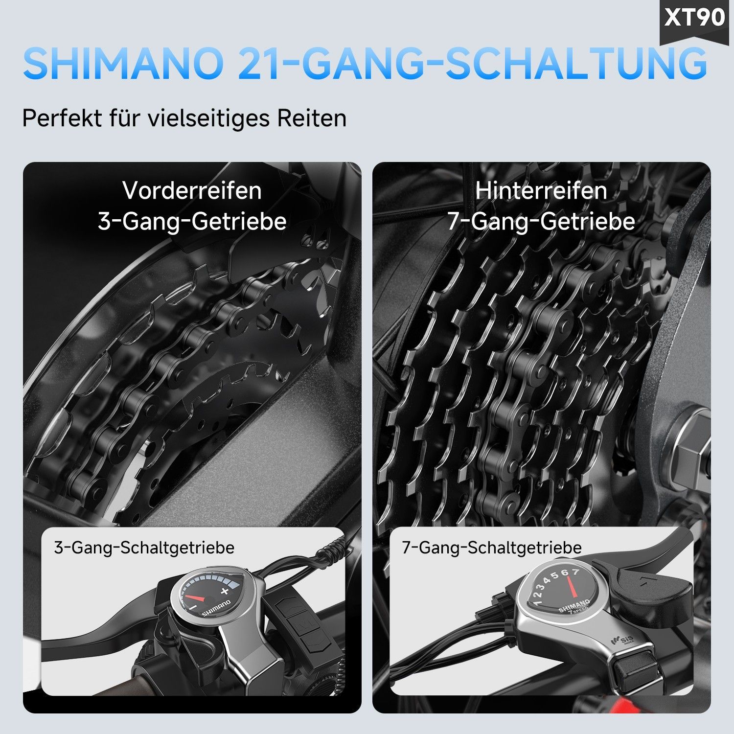 26 Zoll Offroad-Reifen E-Mountainbike 48V 20Ah Akku mit Shimano 7-Gang Elektrofahrrad
