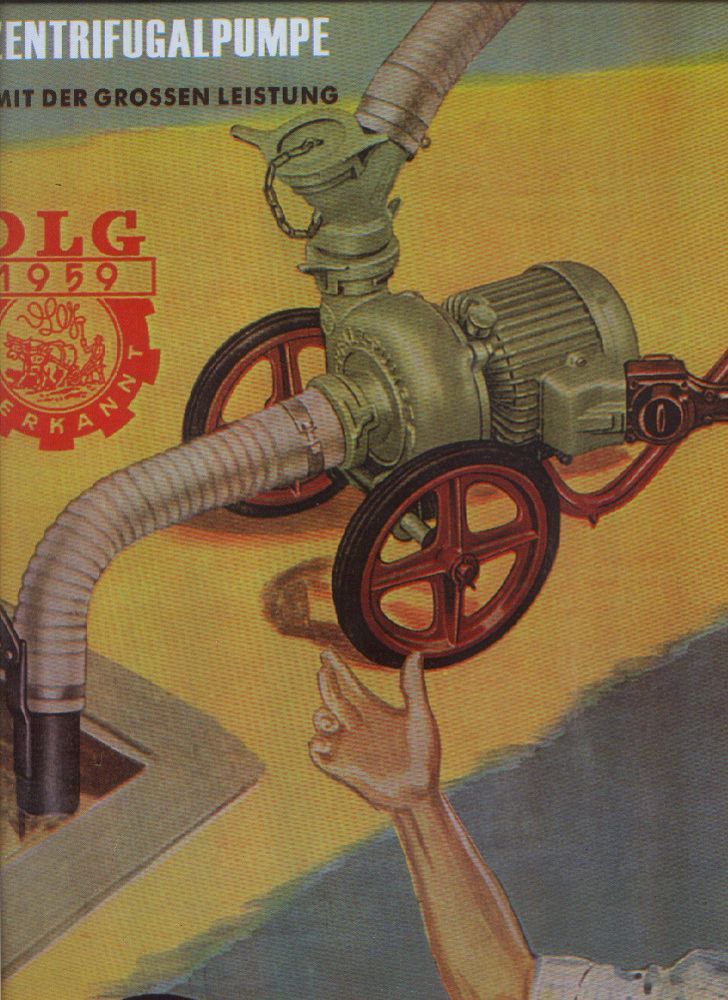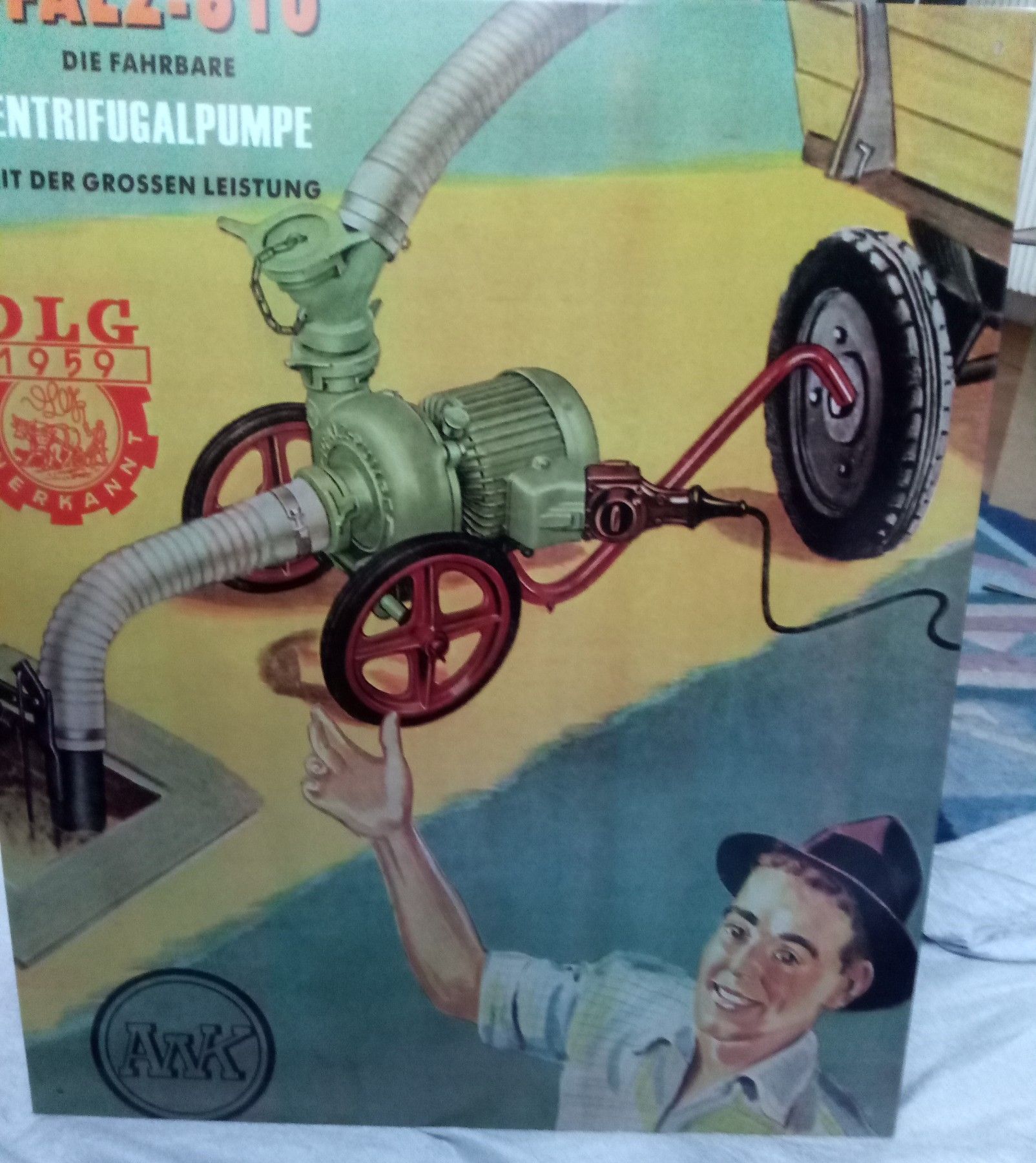 Blechschild Pfalz 610 Die Fahrbare Zentrifugalpumpe mit der grossen Leistung Format 39 x 33 cm 4 Montagebohrlöcher Chromalinbeschichtetes Metall daher Lichtecht