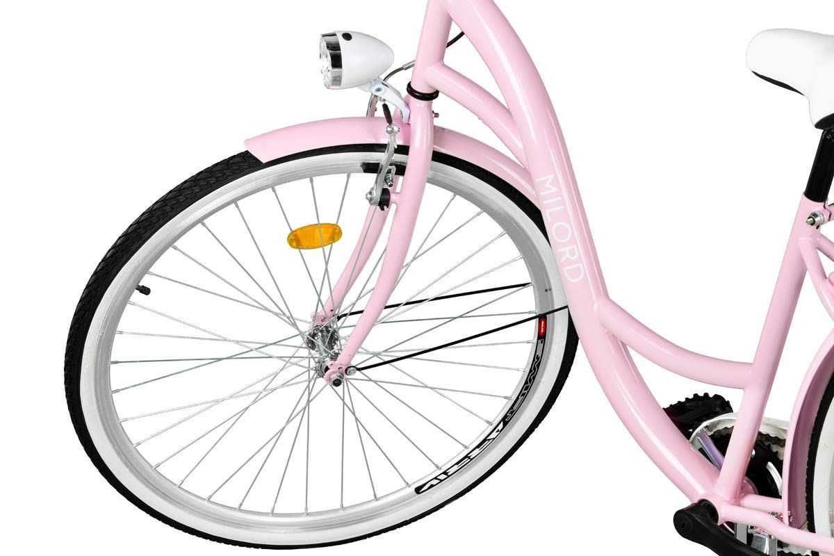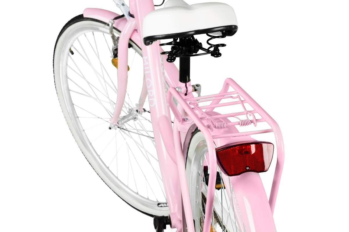 MILORDBIKES 28 Zoll Damenfahrrad MILORD Citybike Mit Korb Stadtrad Vintage Pink Fahrrad 1 Gang
