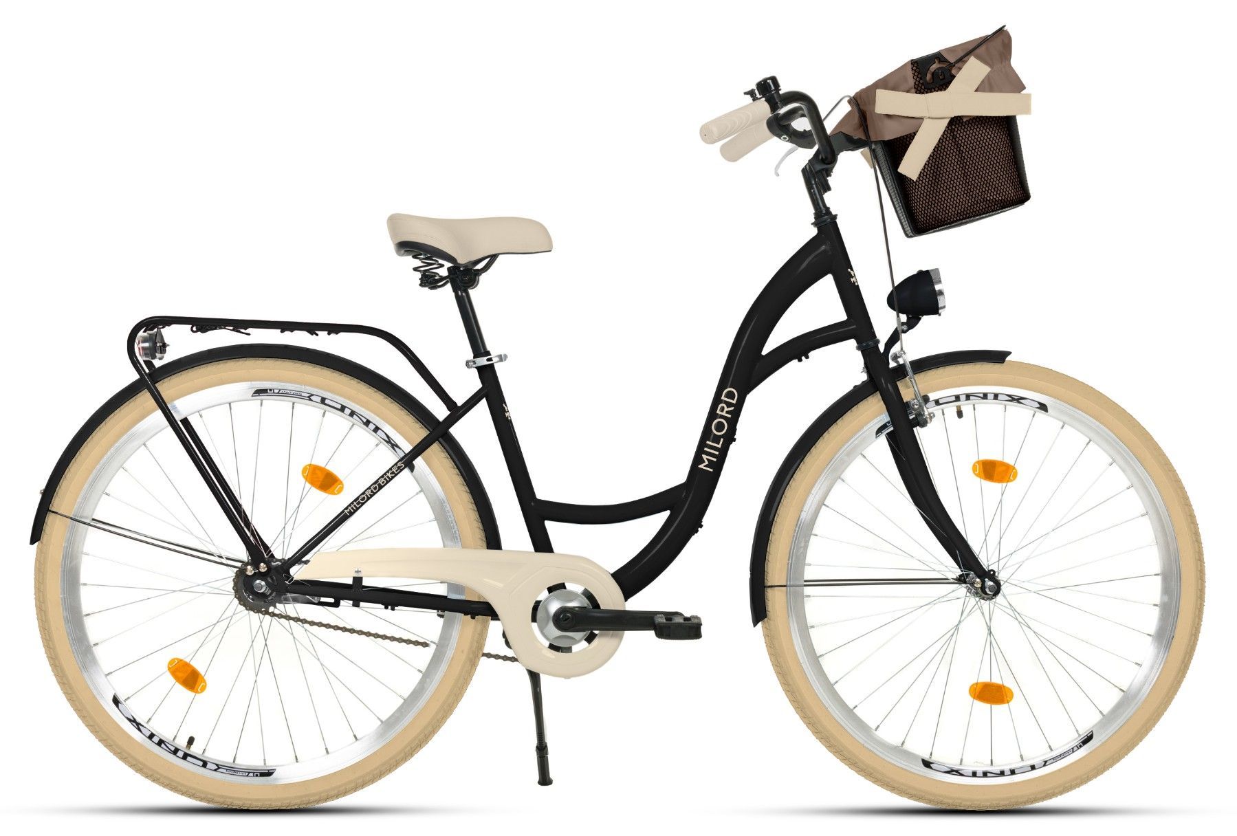 MILORDBIKES 28 Zoll Damenfahrrad MILORD Citybike Mit Korb Vintage Schwarz-Creme Fahrrad 1 Gang