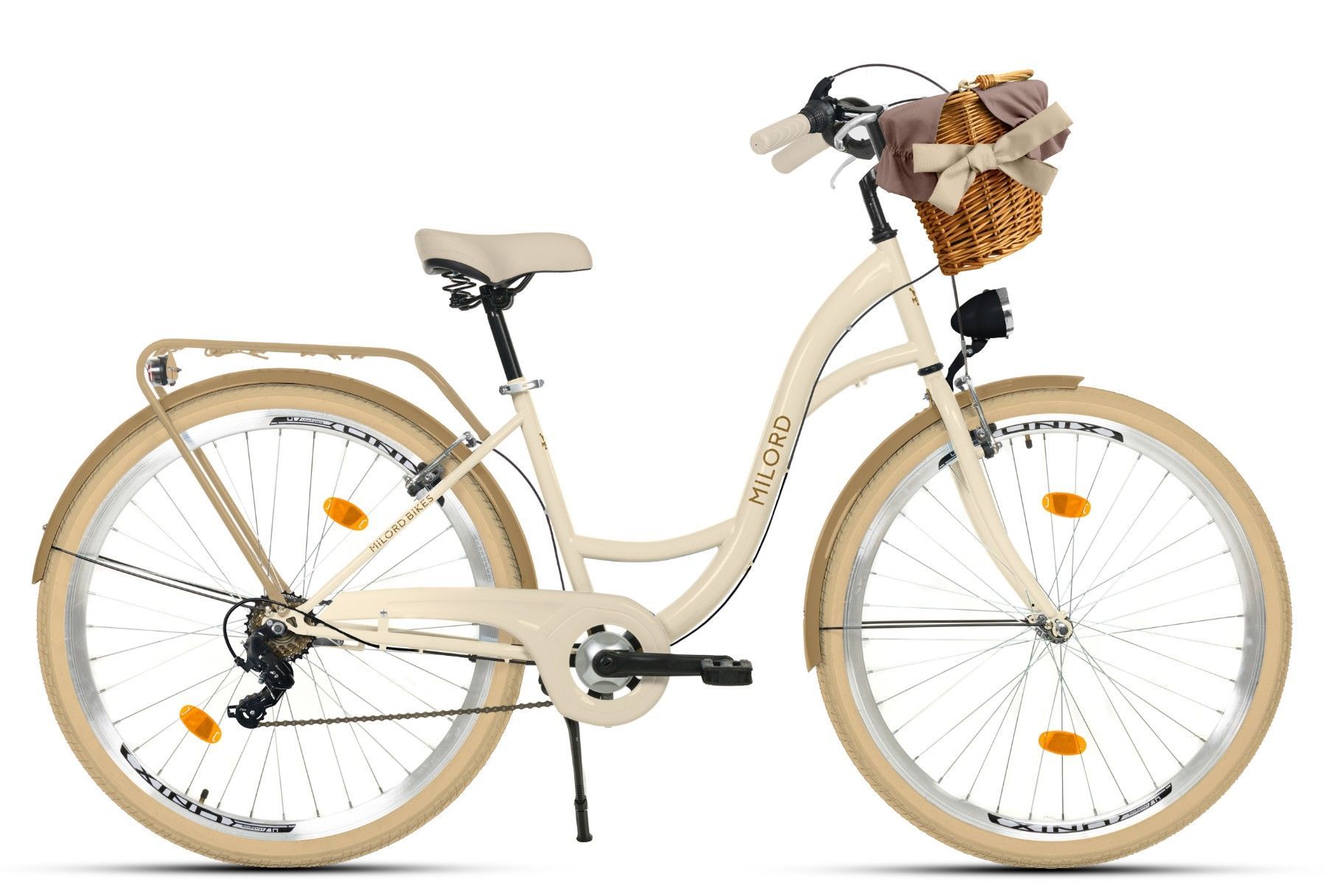 MILORDBIKES 28 Zoll Damenfahrrad MILORD Citybike Mit Weidenkorb Vintage Creme Fahrrad 7 Gänge