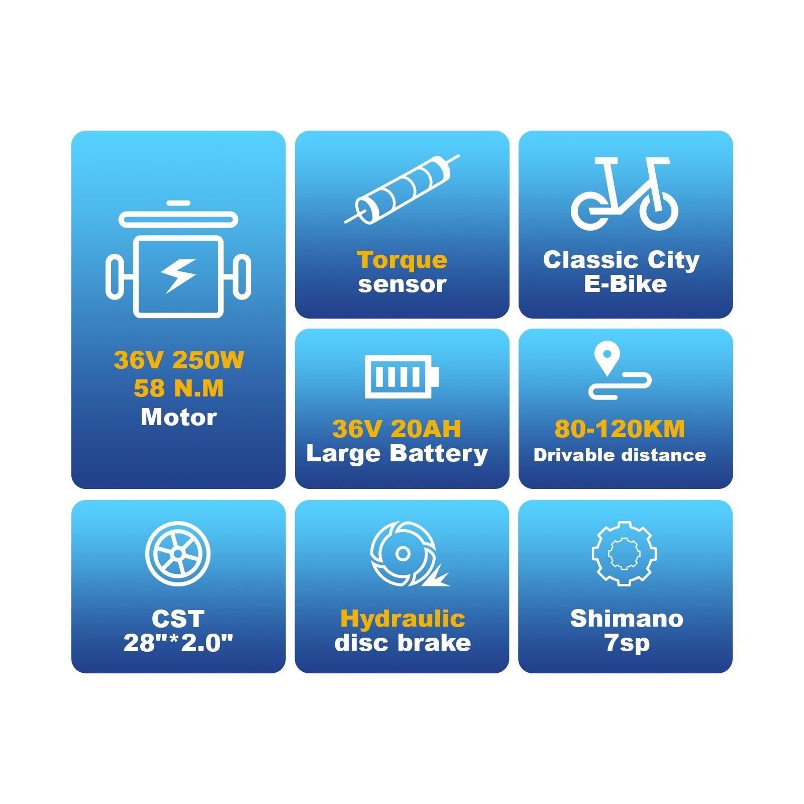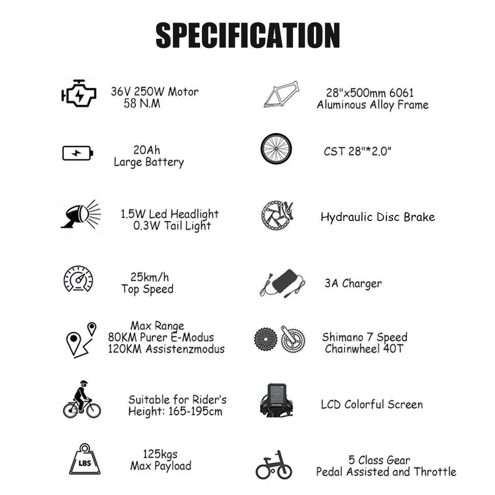 28-Zoll Tiefeinsteiger E-Bike 36V 20Ah 250W Elektrofahrrad für Damen und Herren