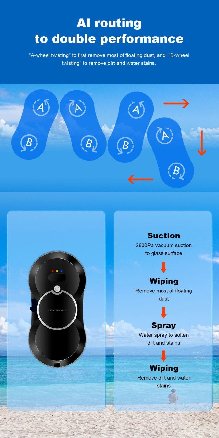 2800Pa Saugleistung 30ml Wassertank Liectroux HCR-10 Roboter-Fensterputzer