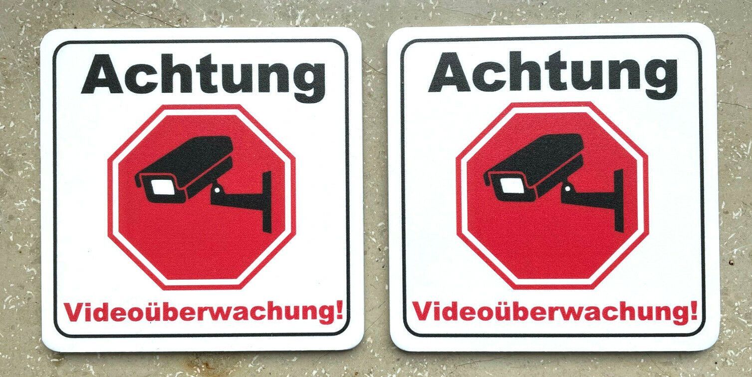 2er, 5er oder 10er Set Achtung Videoüberwachtung PVC-Schilder abger. Ecken!